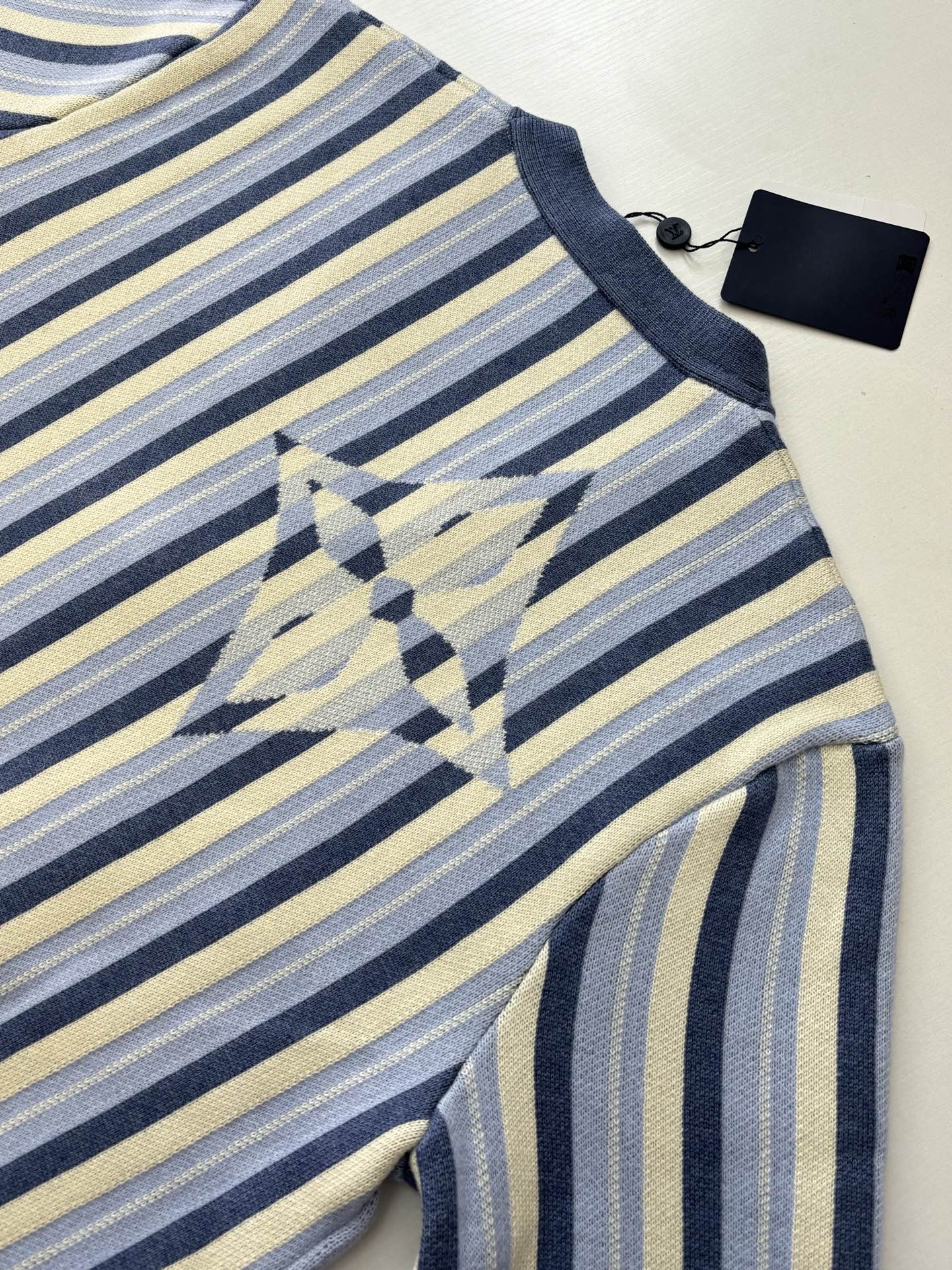 LV 블루 울 자수 반팔 티셔츠