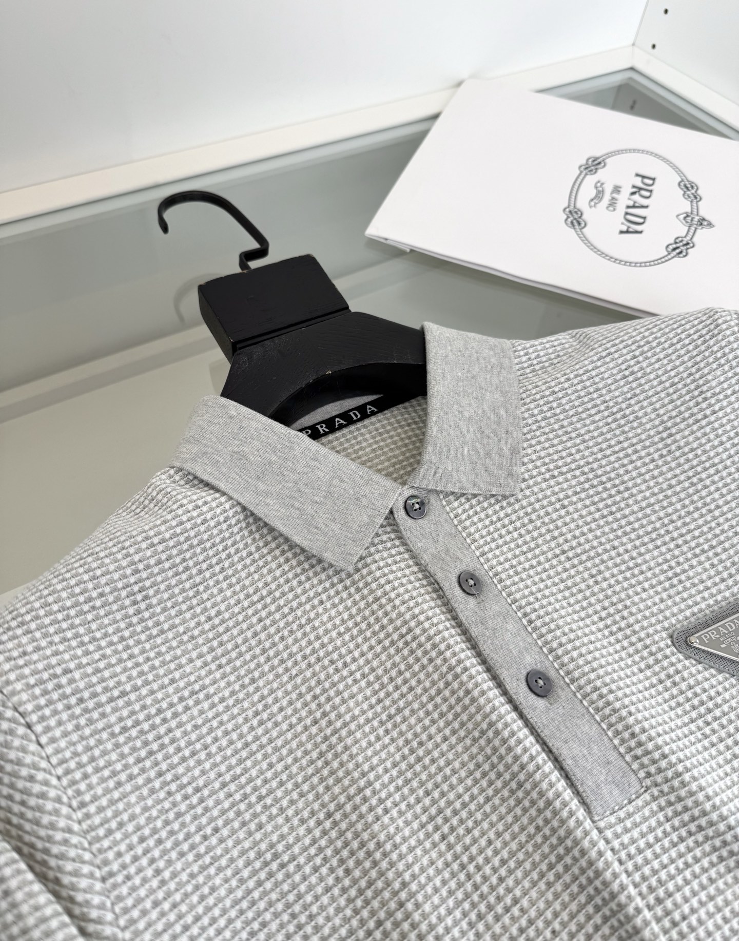 프라다 자카드 니트발팔 티셔츠
