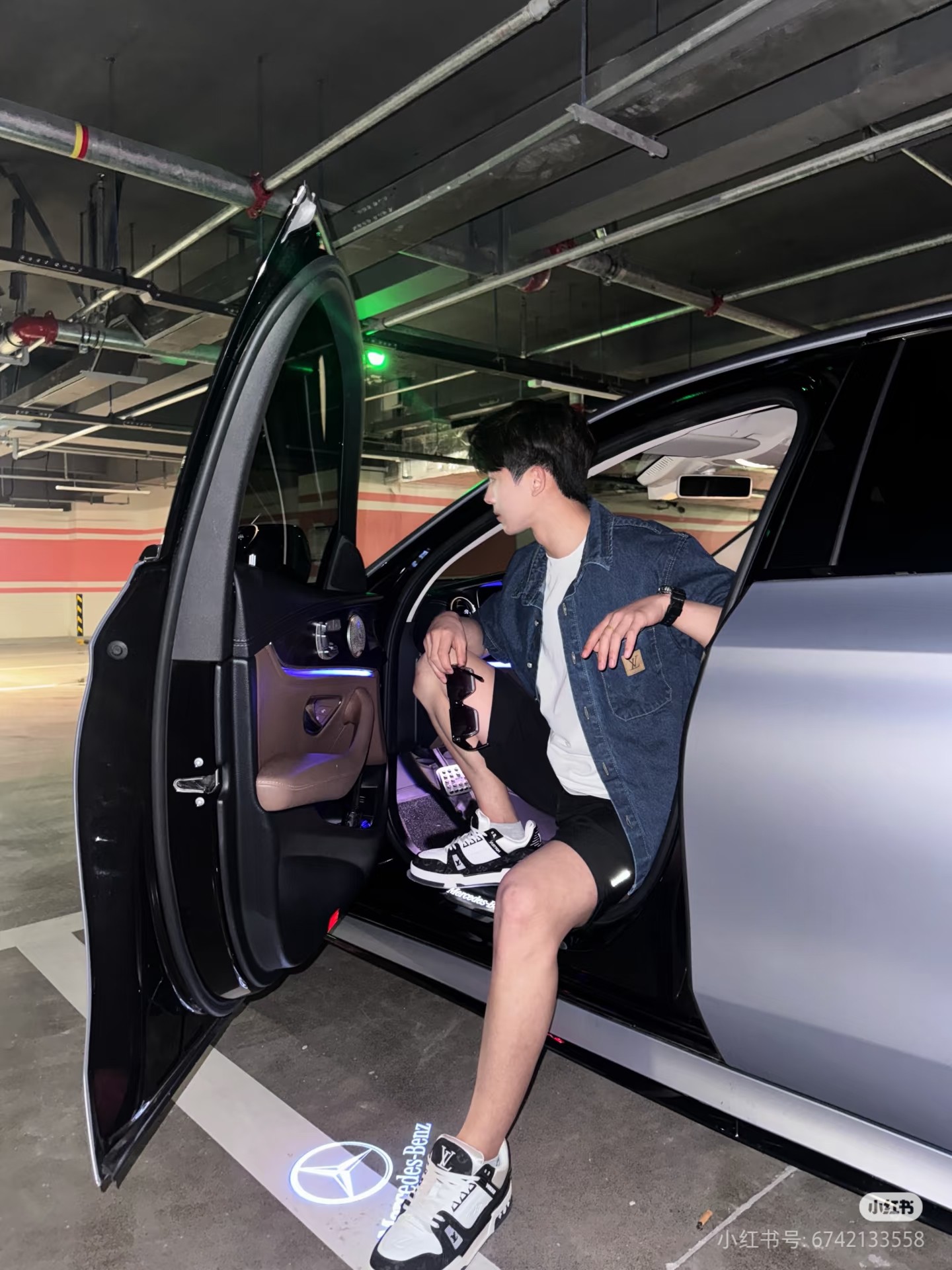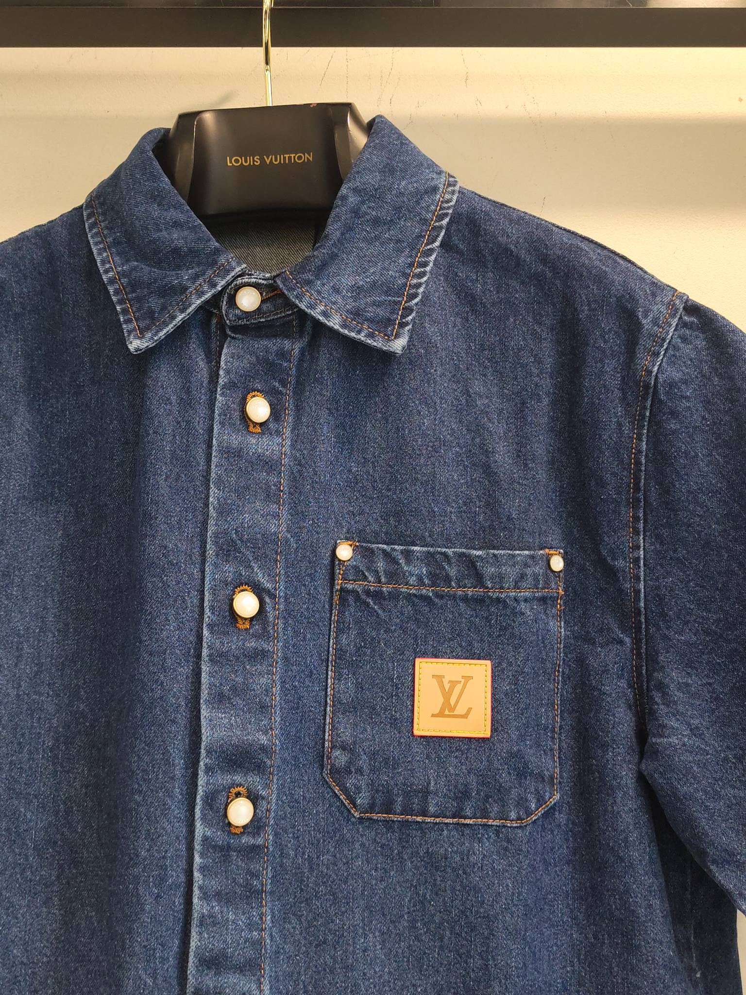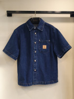 LV 데님 가죽 반팔 티셔츠