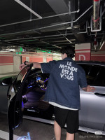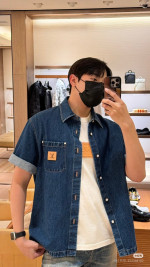 LV 데님 가죽 반팔 티셔츠 > 남성의류