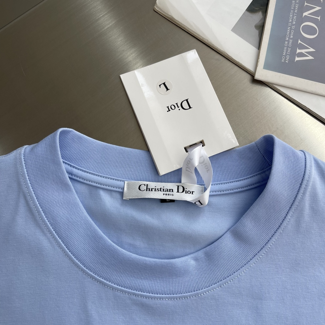 디올 자수 레터링 반팔 티셔츠
