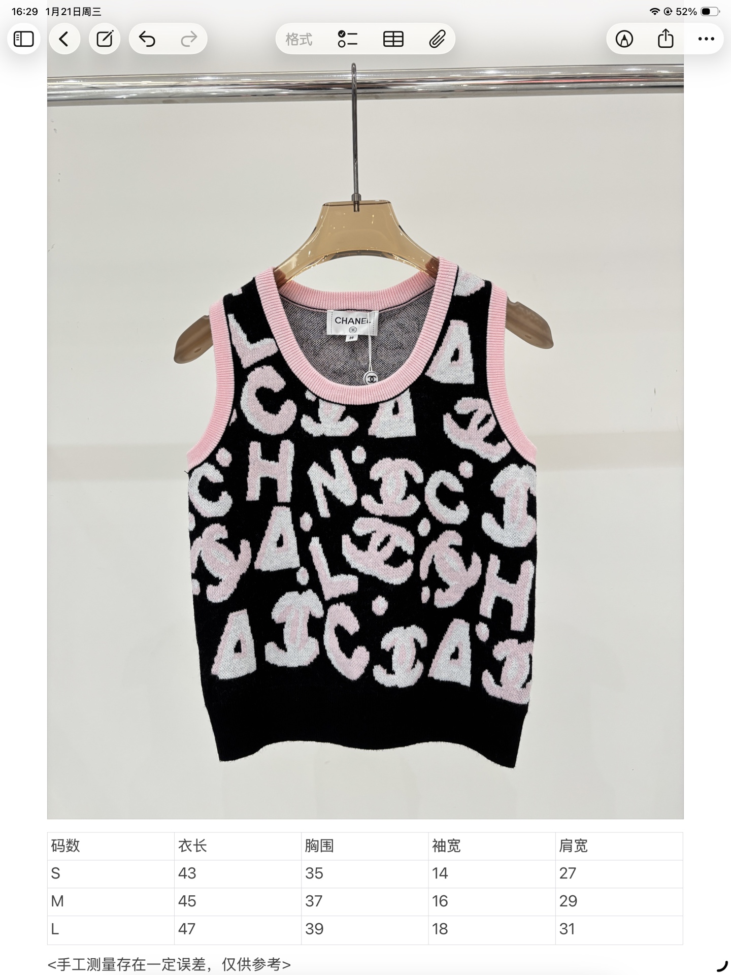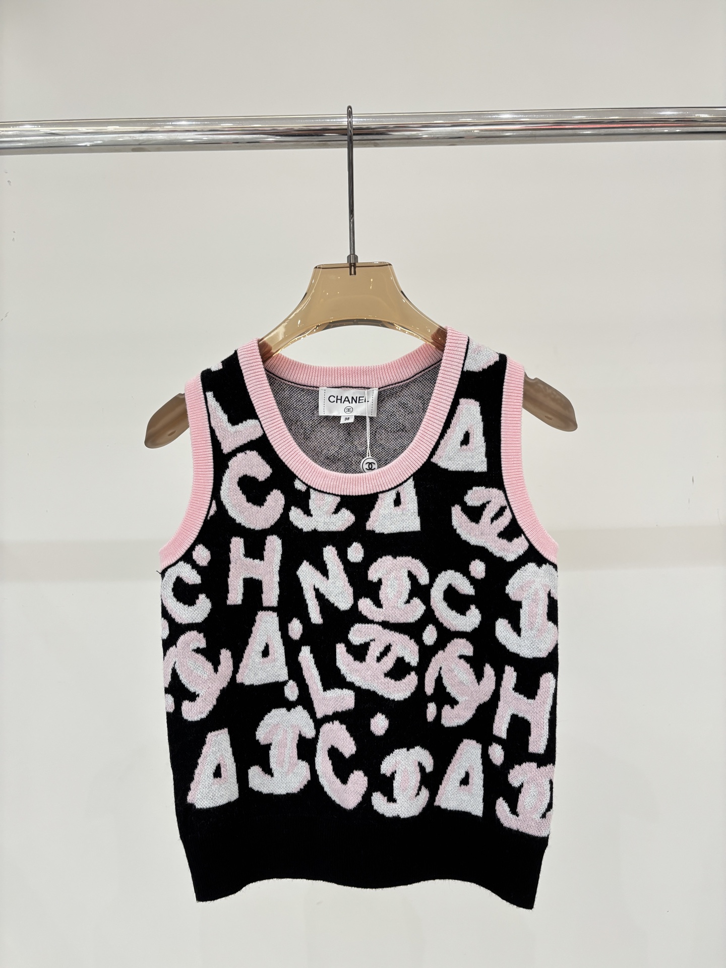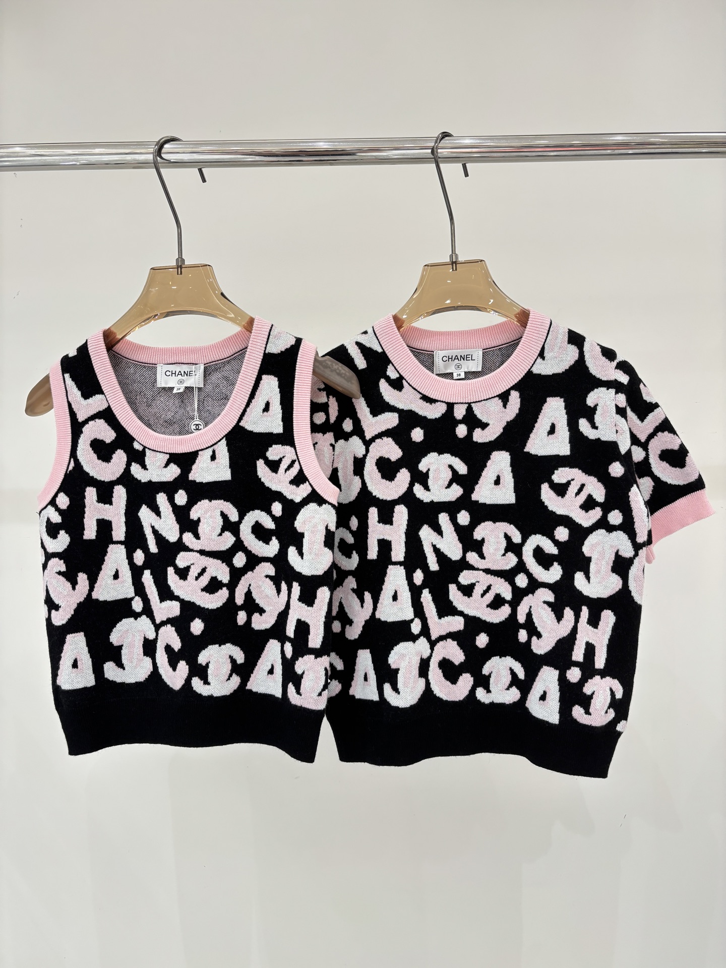 샤넬 라운드넥 레터로고 자카드폴 베스트