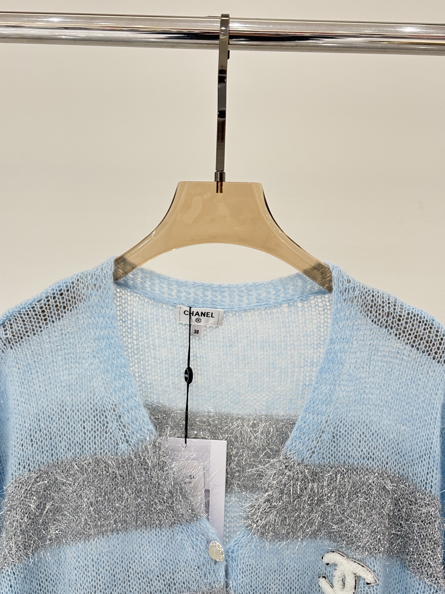 샤넬 라운드넥 울 장식 니트 반팔