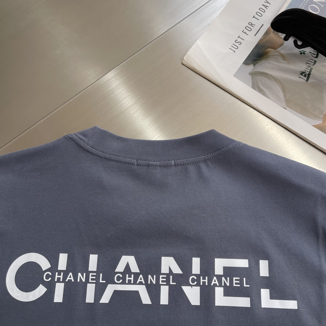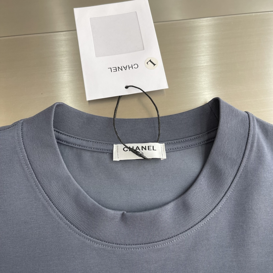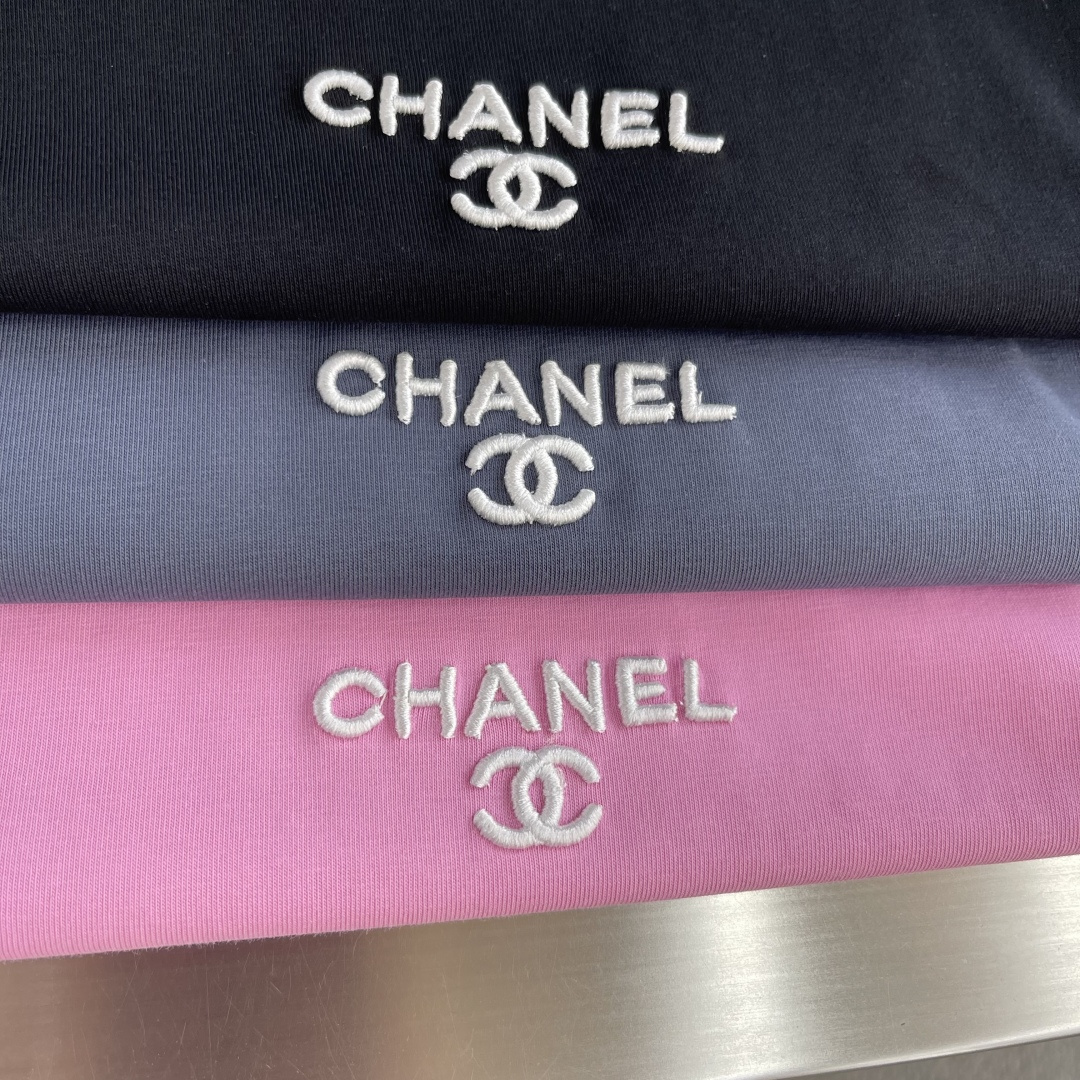 샤넬 자수 로고 반팔 티셔츠