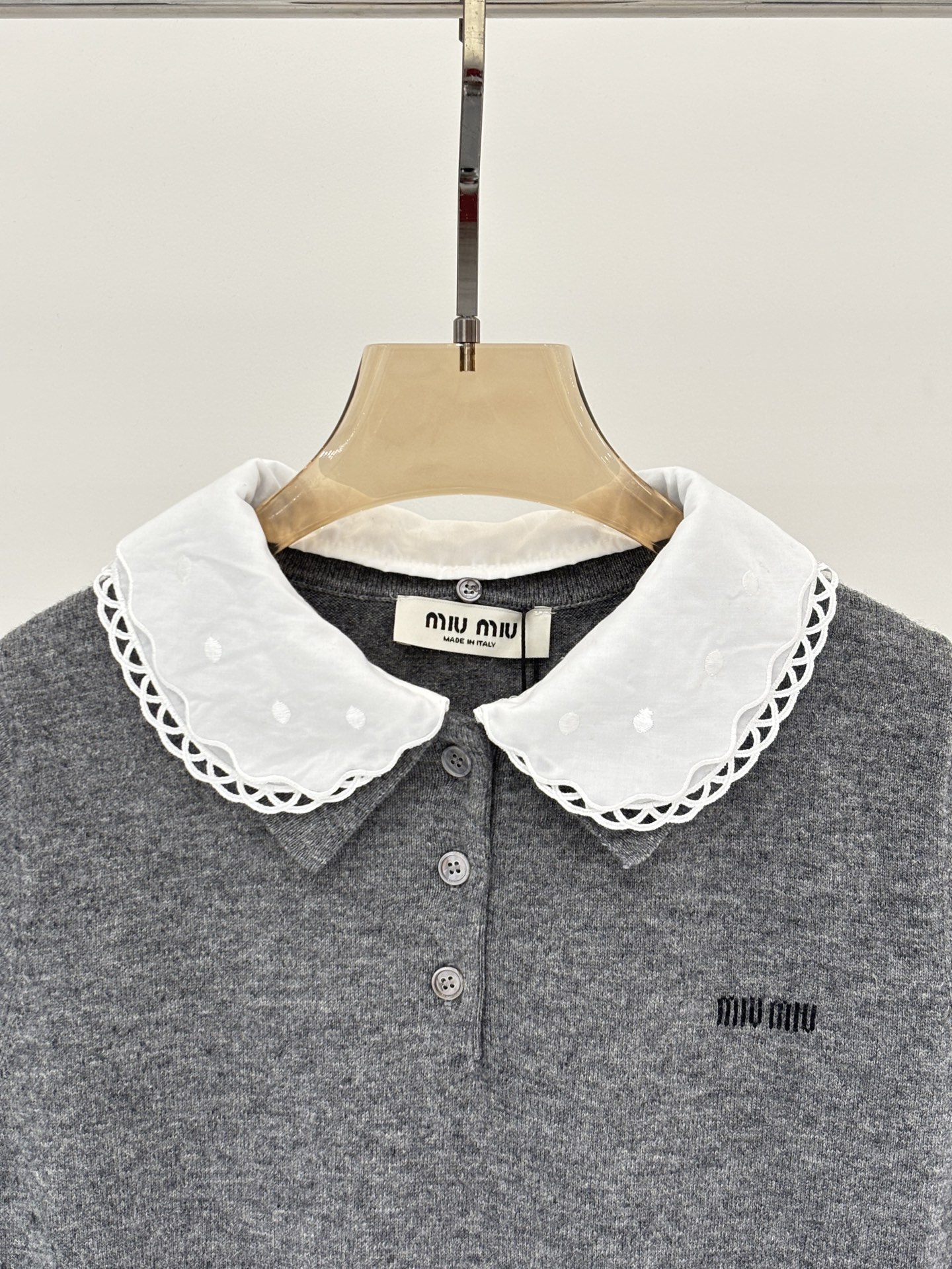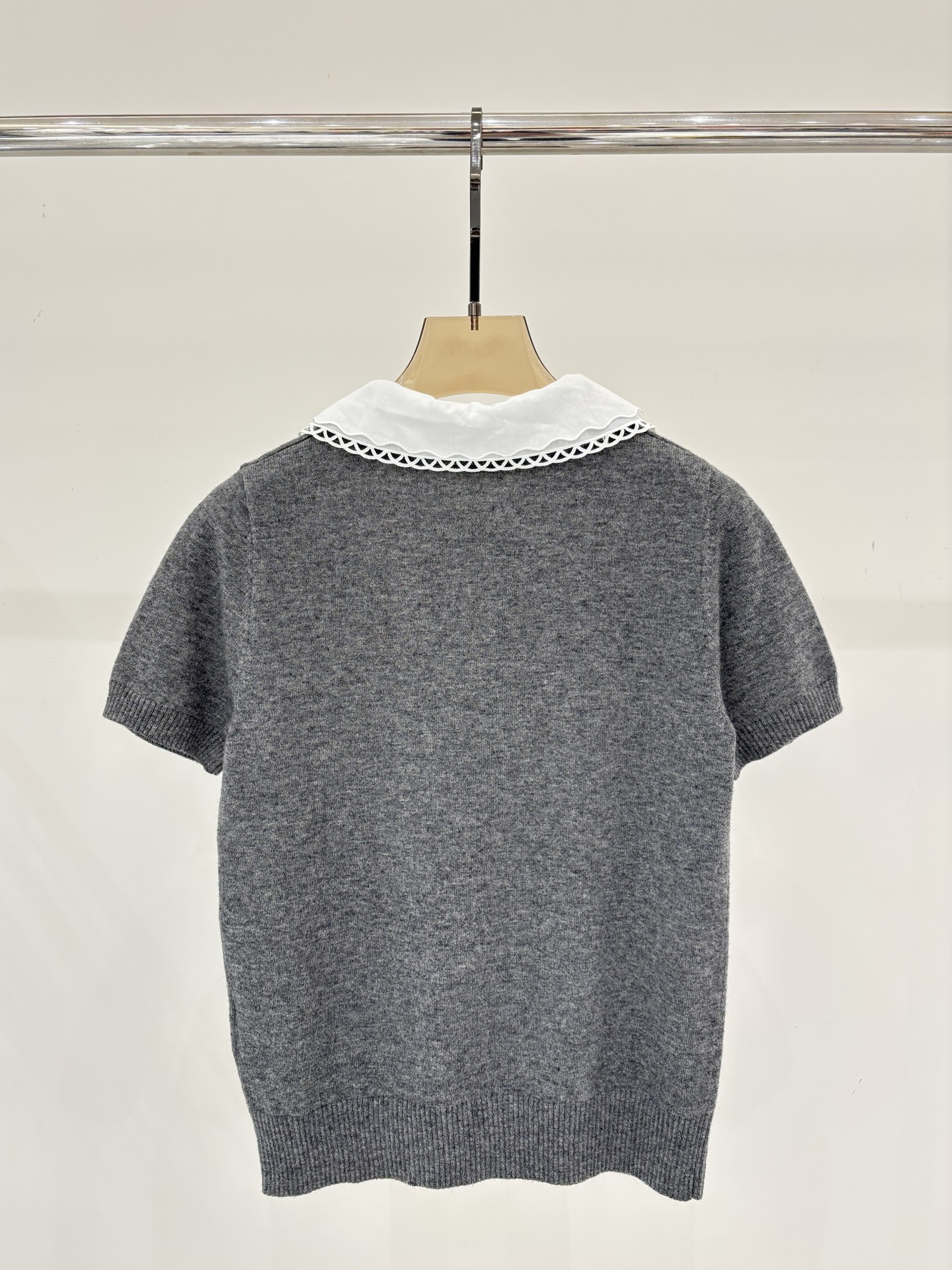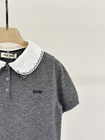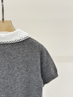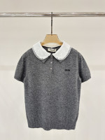 미우미우 로고 자수 하프니트 풀오버 반팔