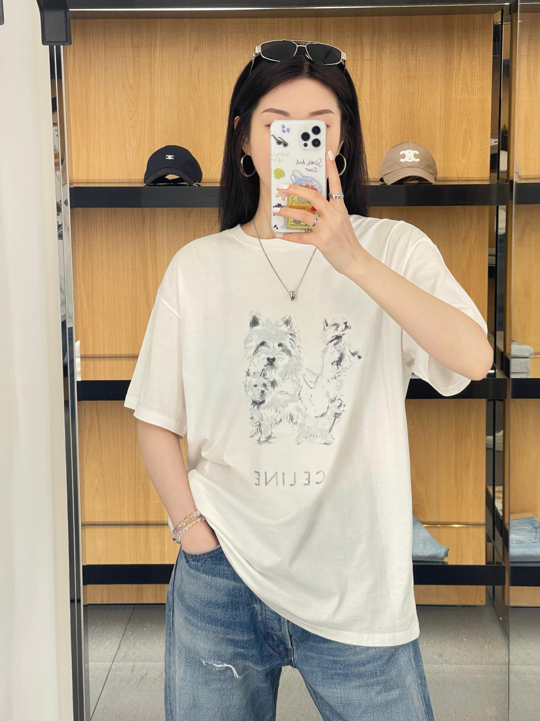 셀린느 프레임 프린트 라운드넥 반팔 티셔츠