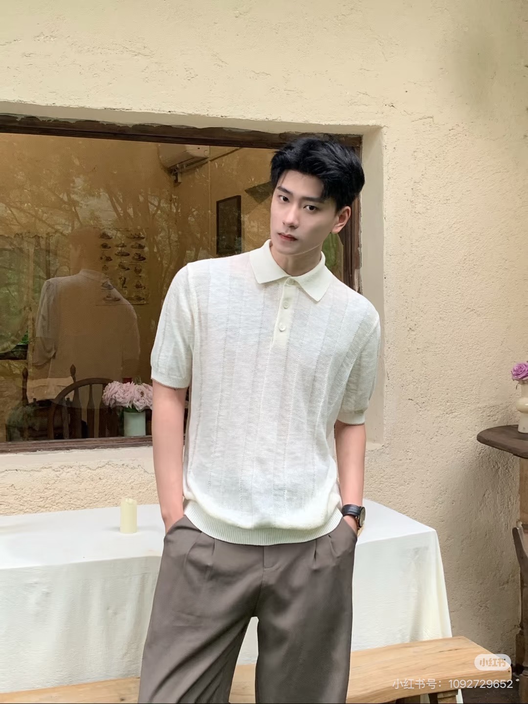 LP 라펠 니트 반팔 티셔츠