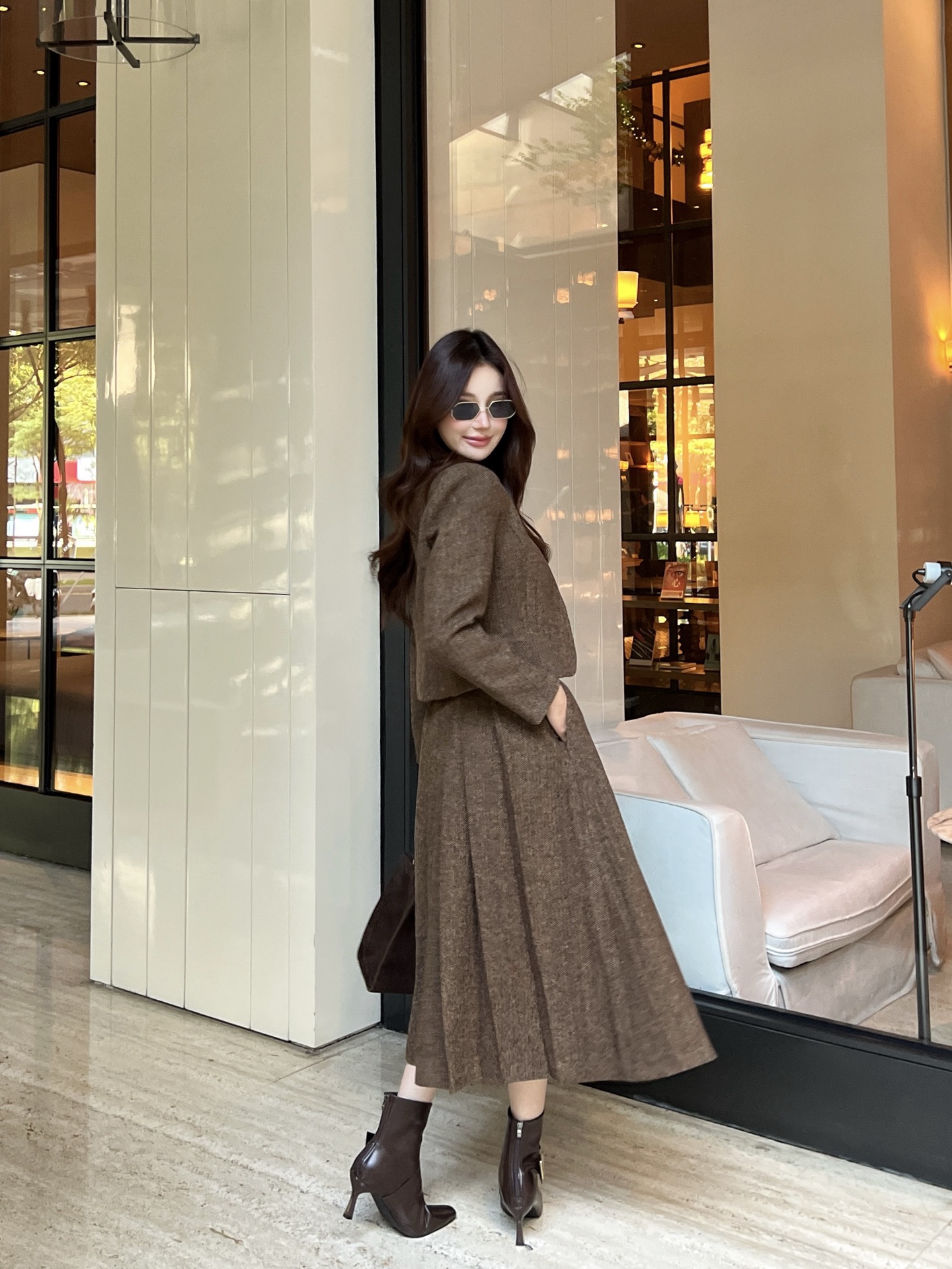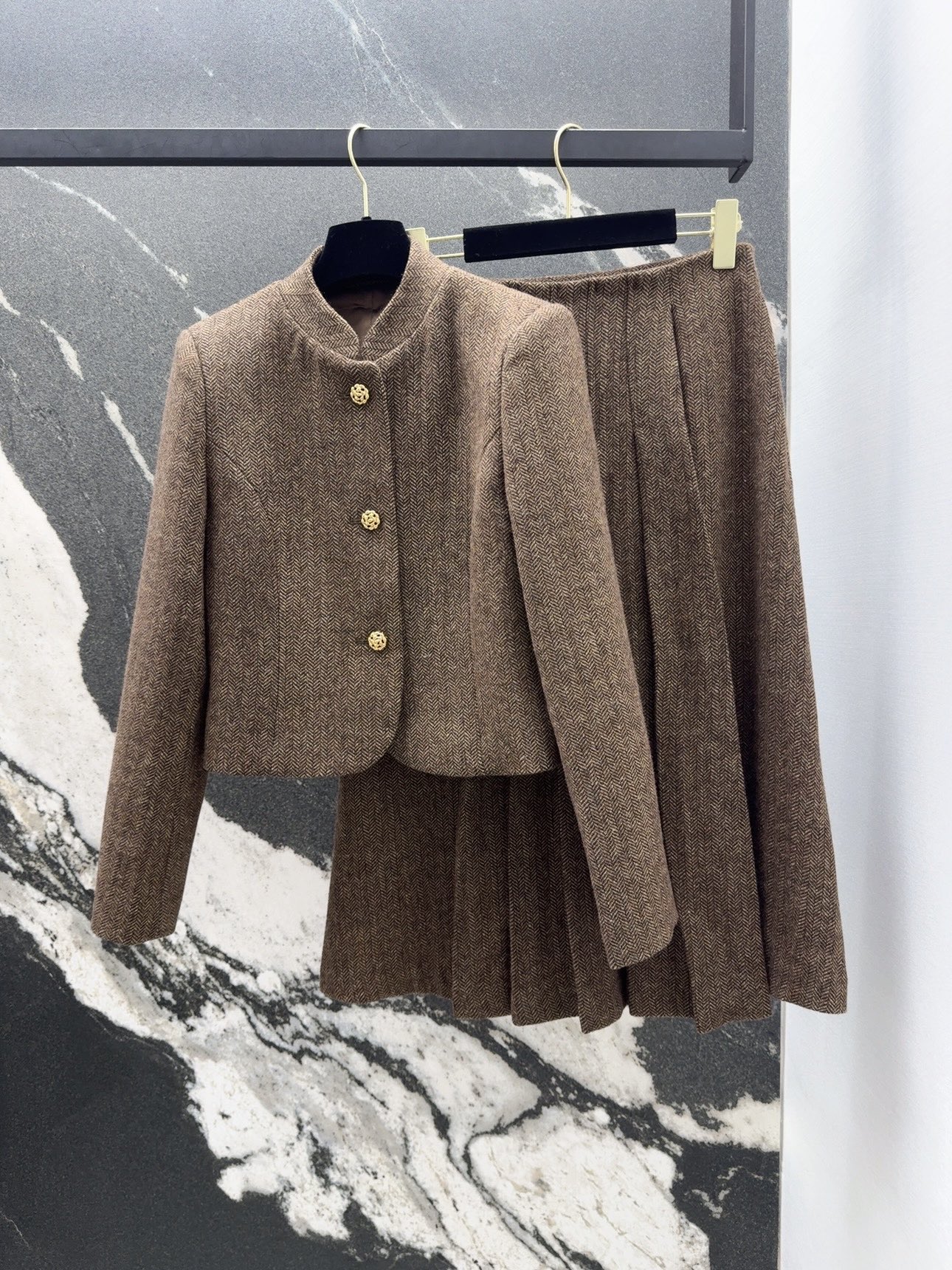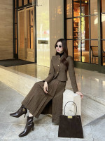 LP 스탠드업 숏 재킷 미디 플러츠 스커트 세트