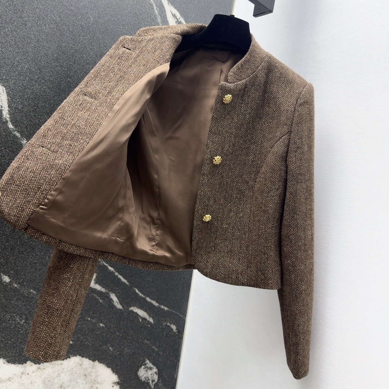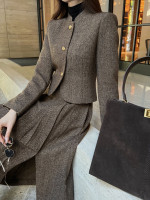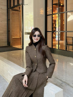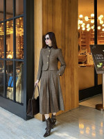 LP 스탠드업 숏 재킷 미디 플러츠 스커트 세트 > 여성의류