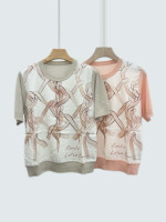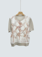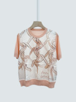 LP 실크 프린트 캐시미어 니트 반팔 디셔츠