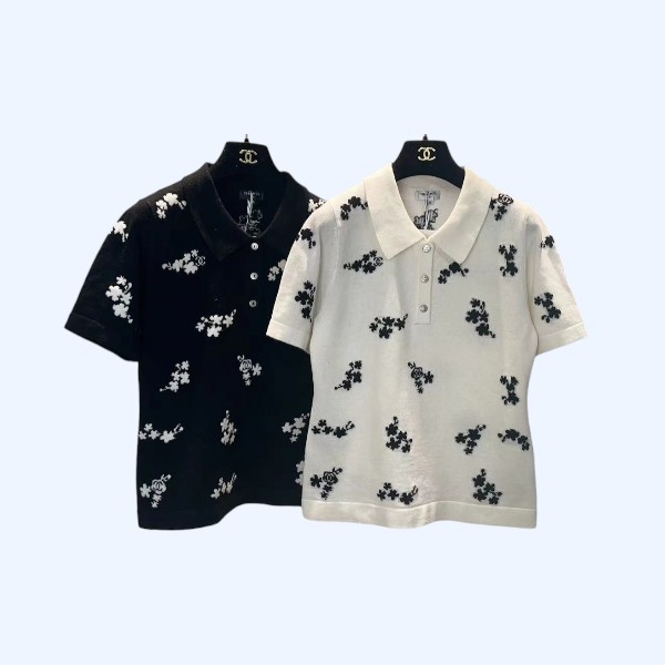 샤넬 투톤 라펠반팔 티셔츠