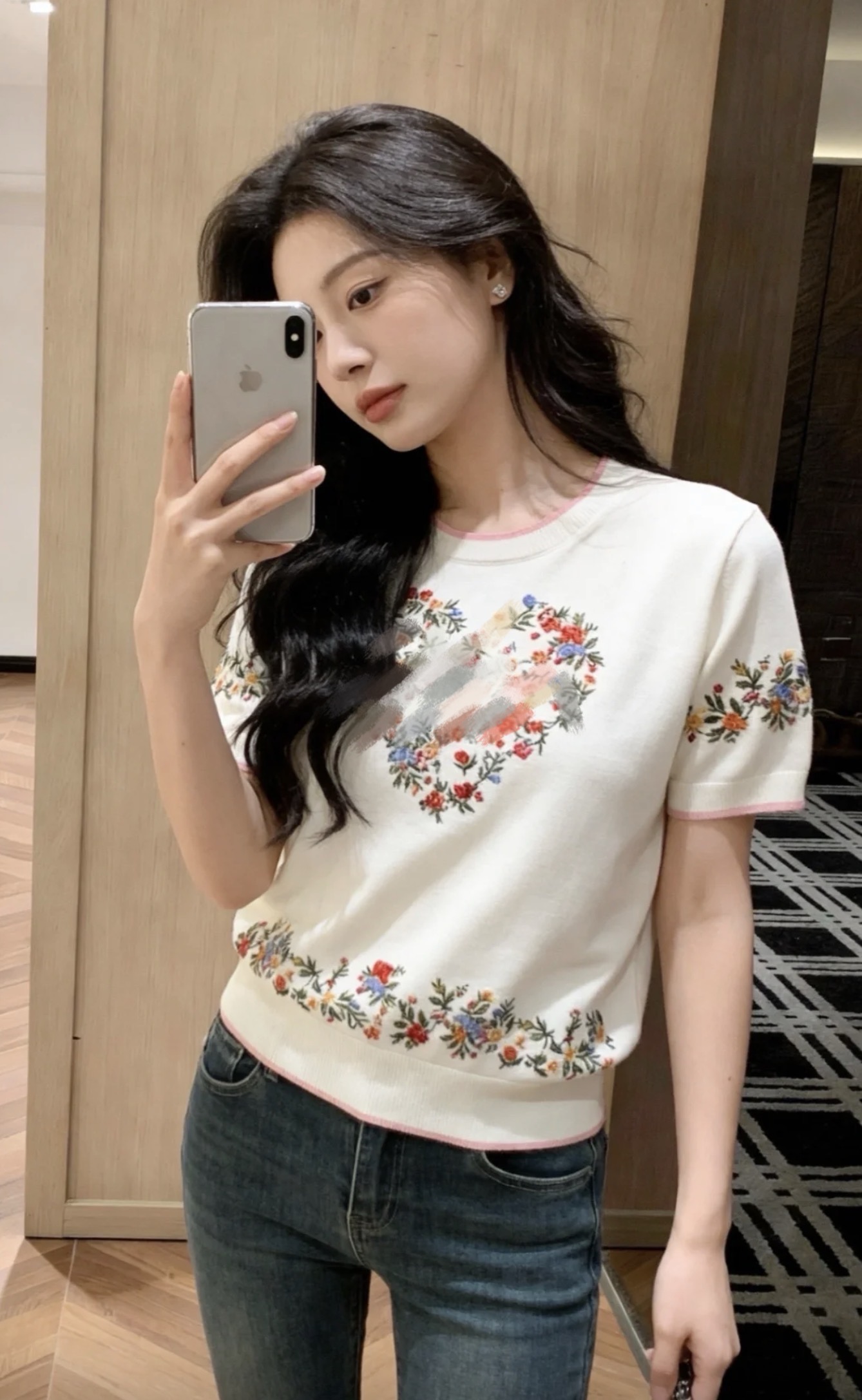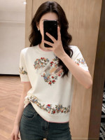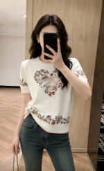 디올 플로럴 자수자카드 니트 반팔