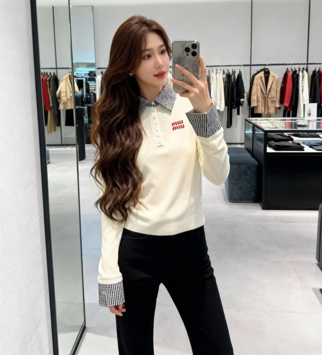 미우미우 라펠 니트 티셔츠