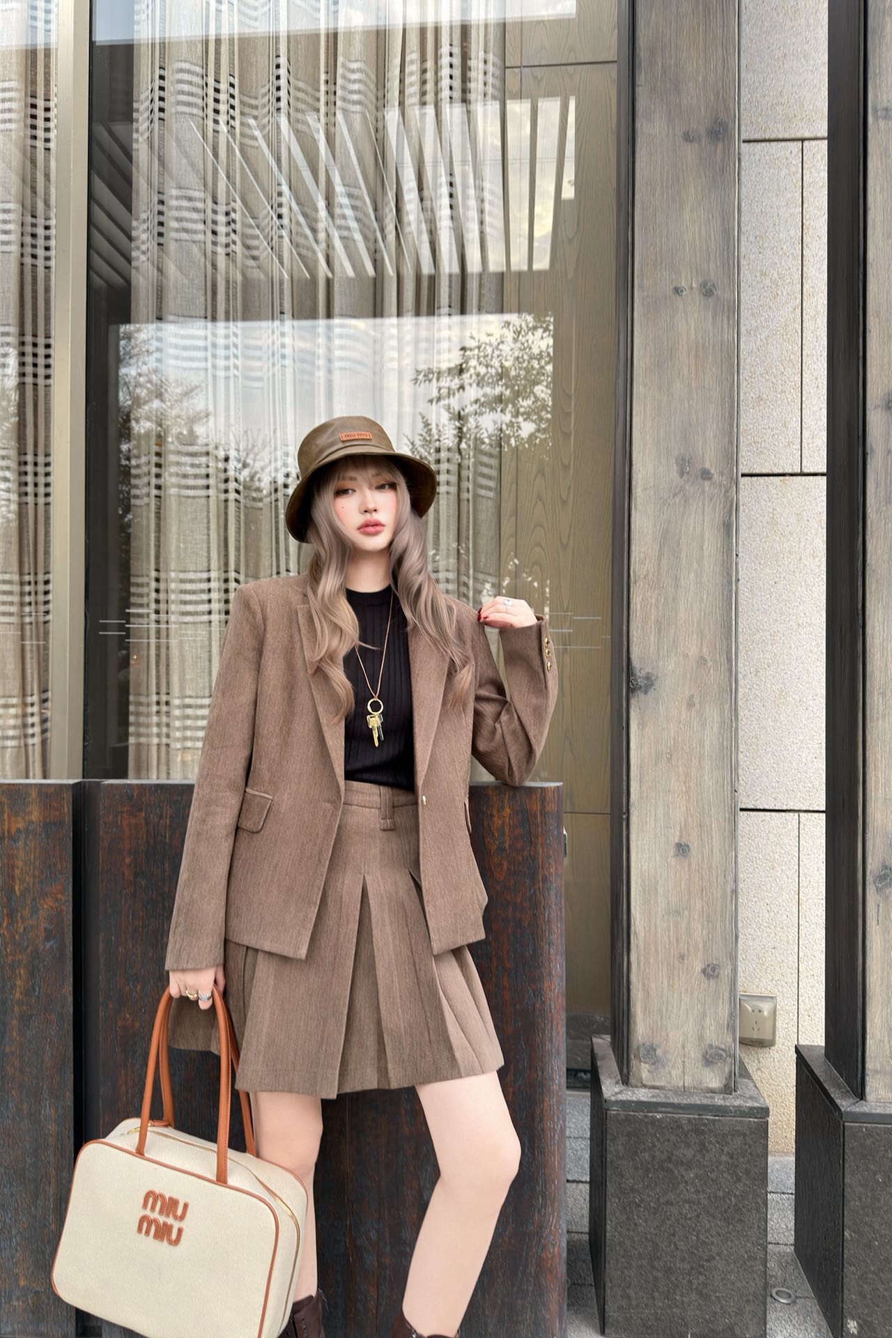 미우미우라펠 재킷 플리츠 정장