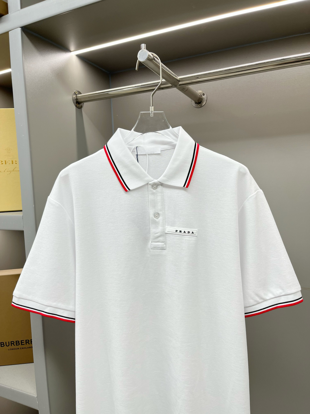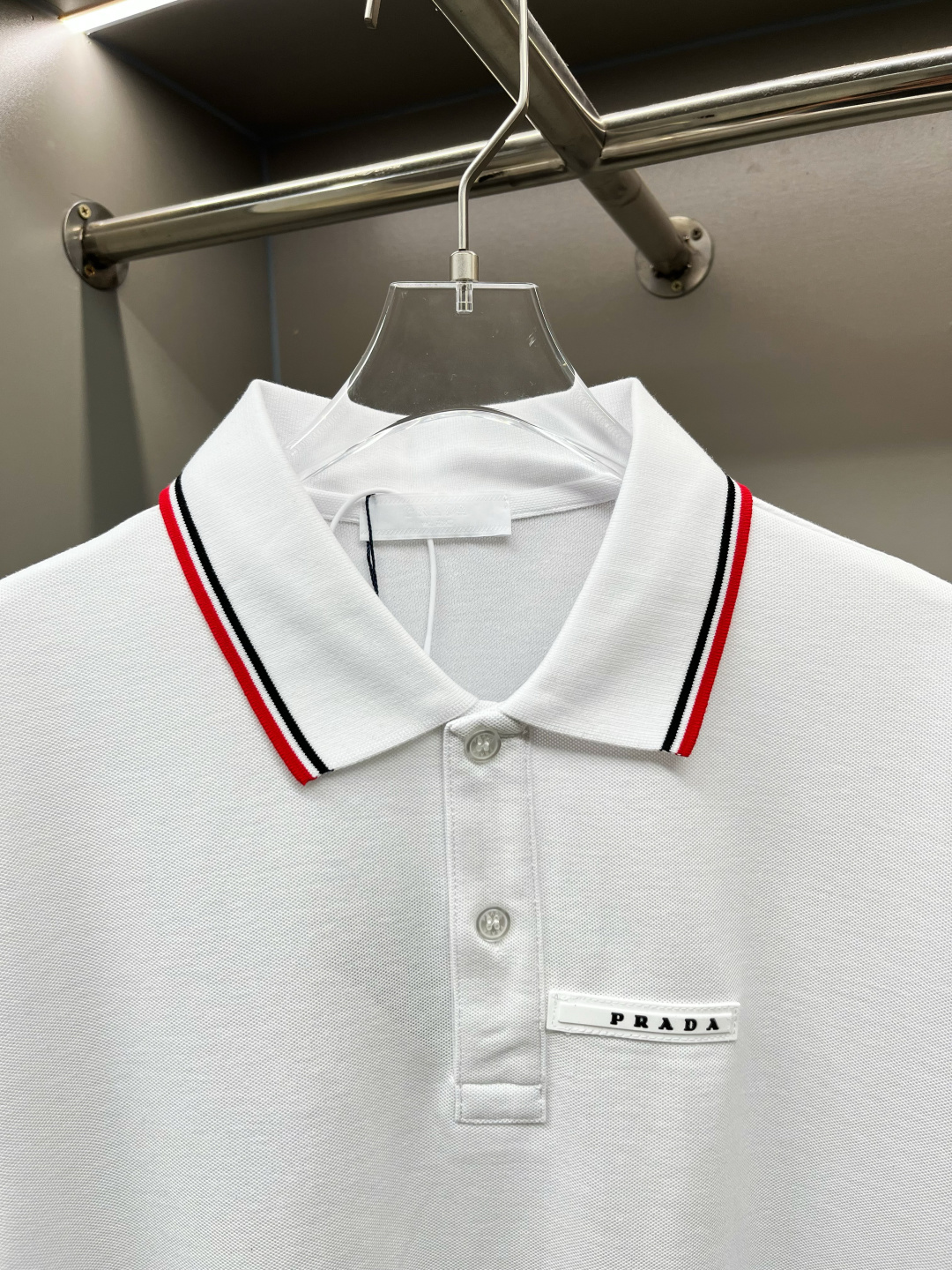 프라다 로고 스트라이프 폴로셔츠