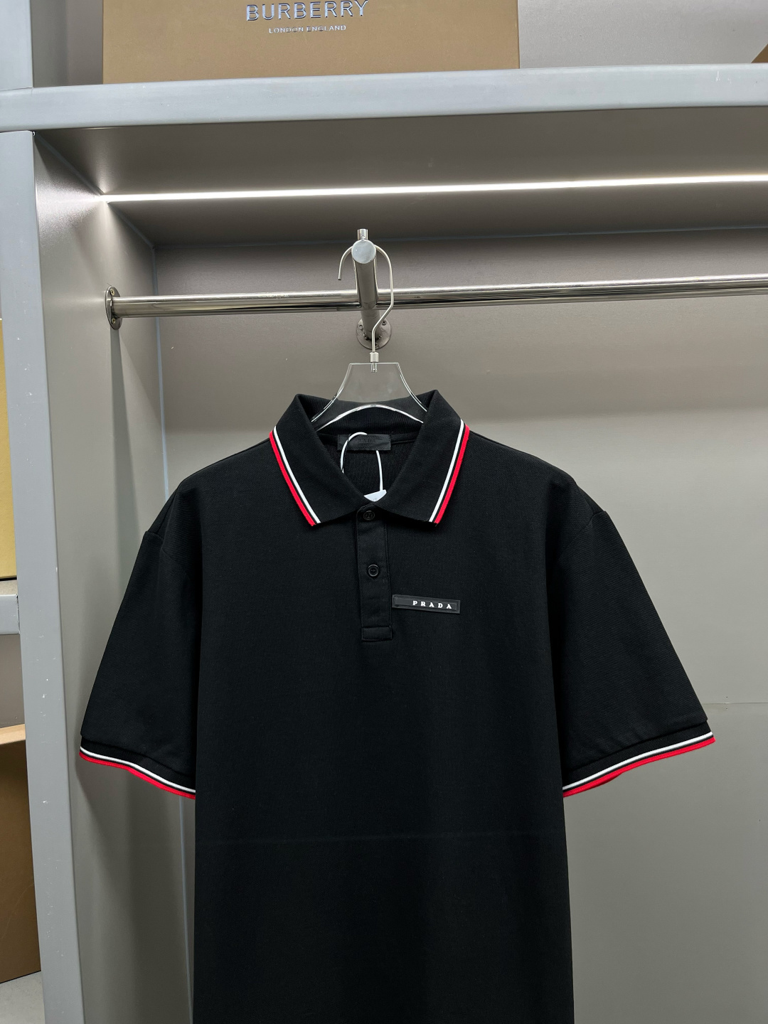 프라다 로고 스트라이프 폴로셔츠
