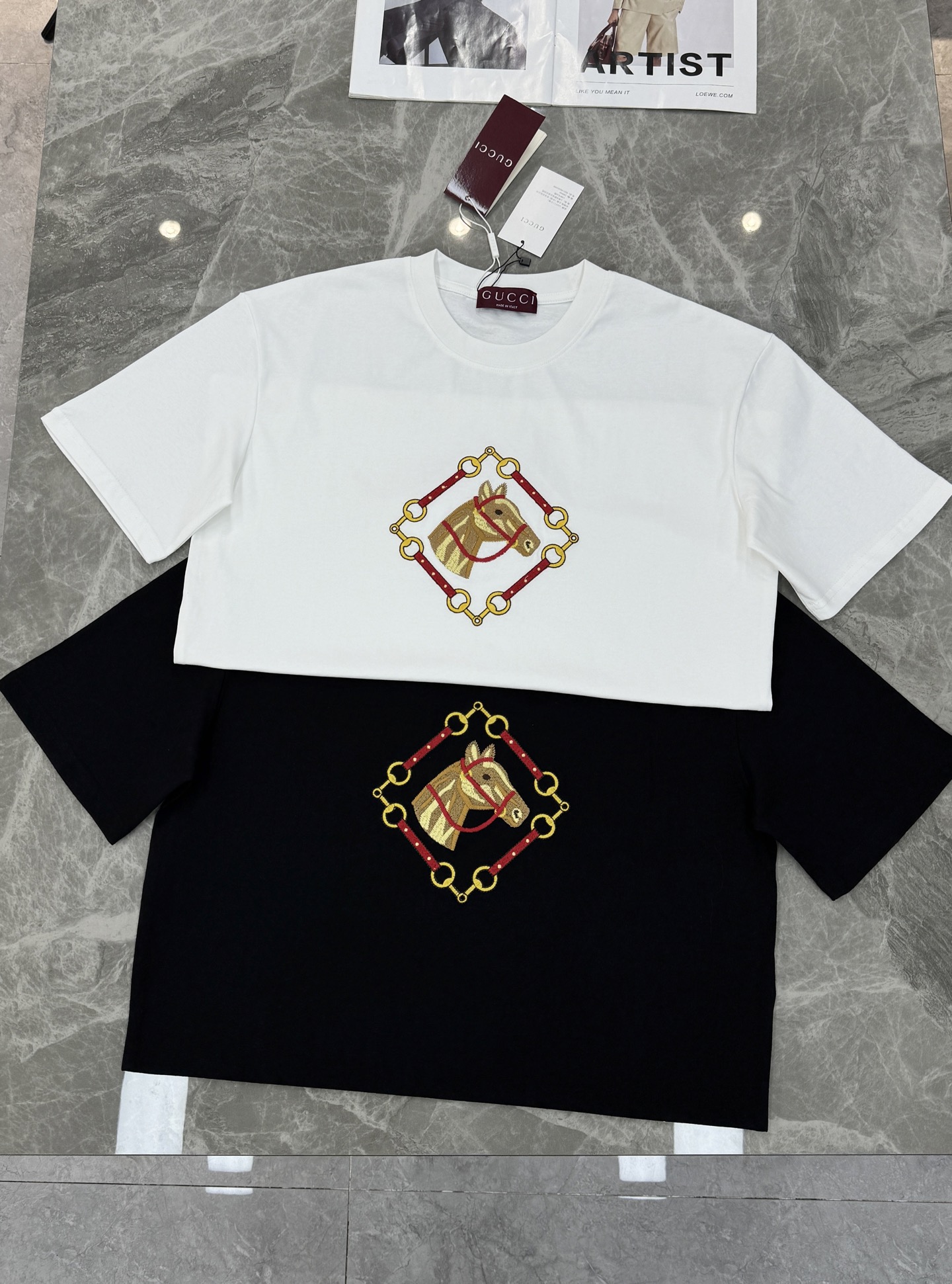 구찌 자수 반팔 티셔츠