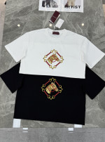 구찌 배지 자수 콘튼 반팔 티셔츠