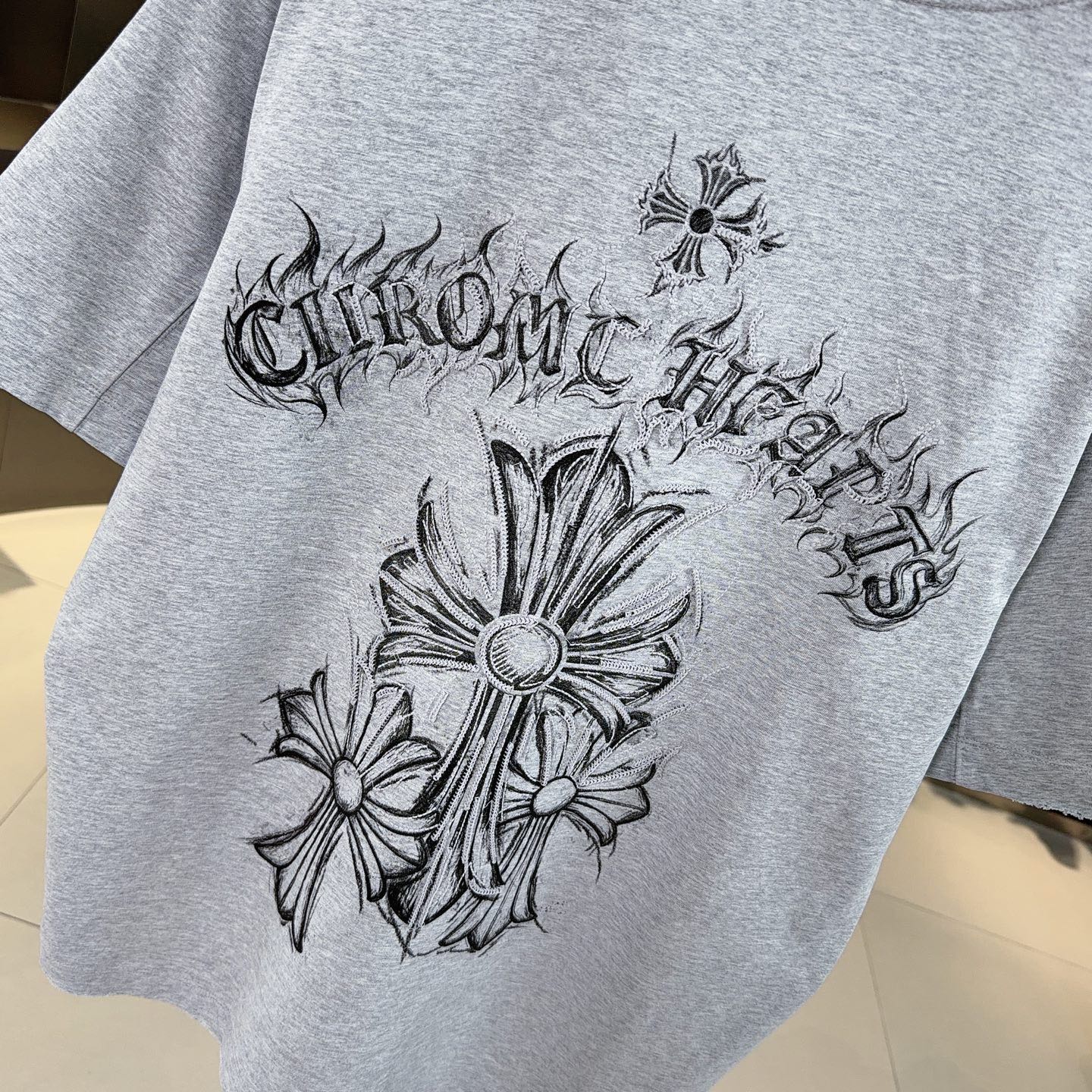 크롬하츠 꽃무늬 프린트 반팔 티셔츠