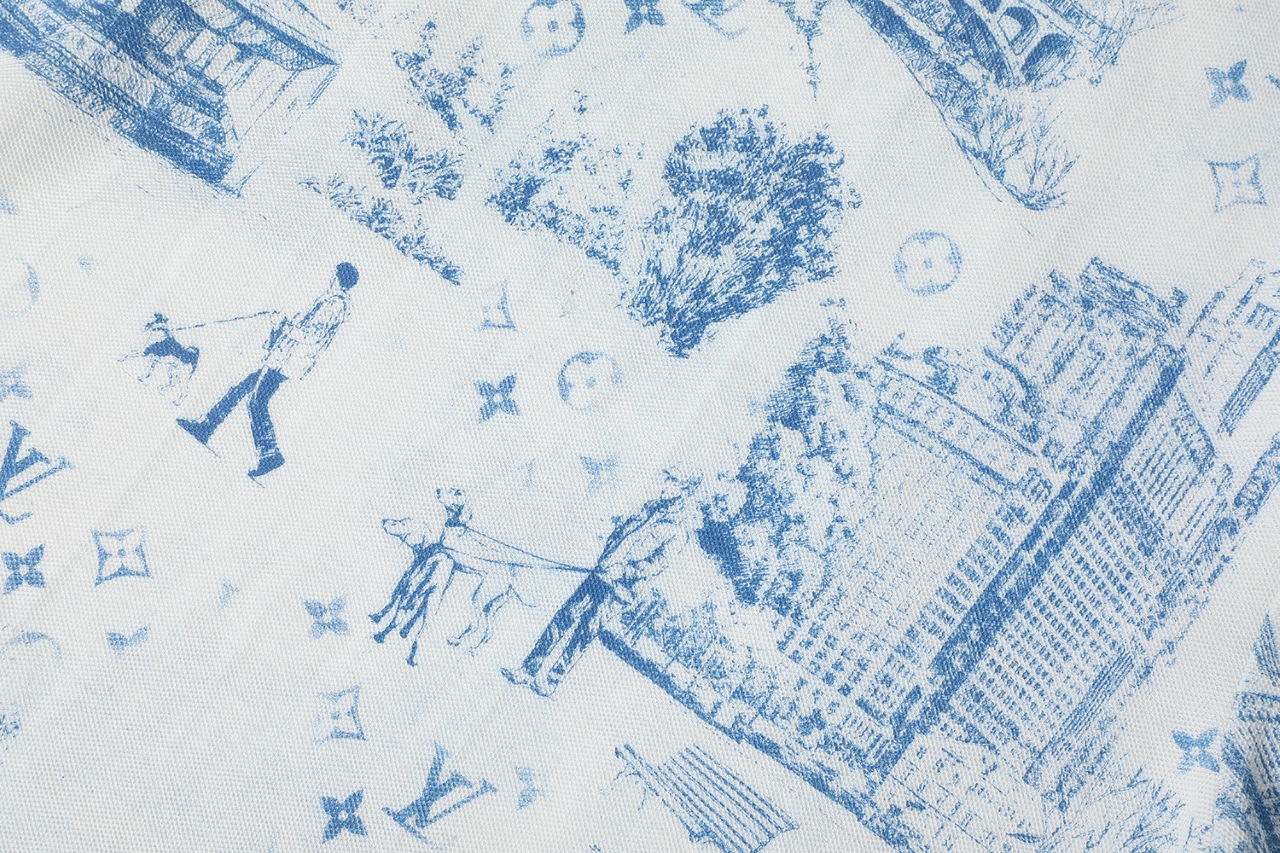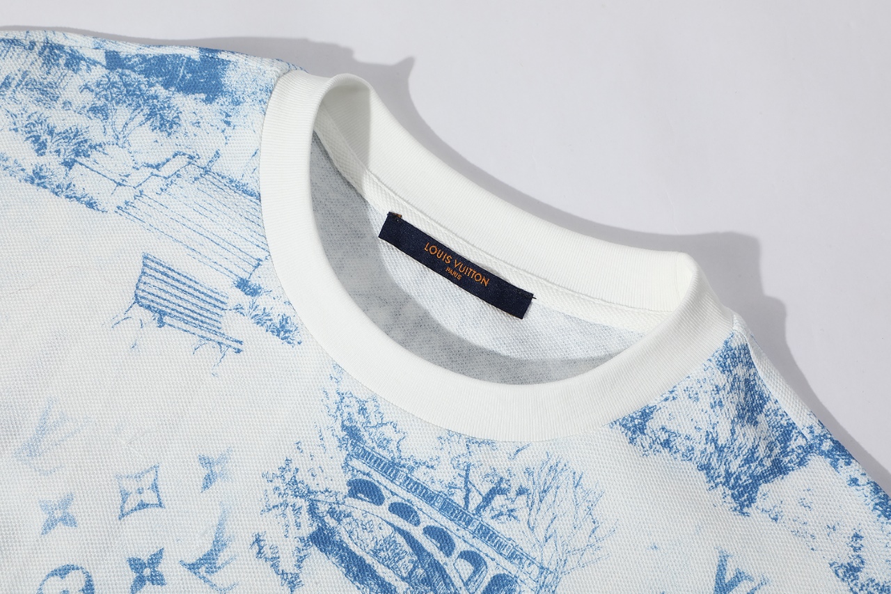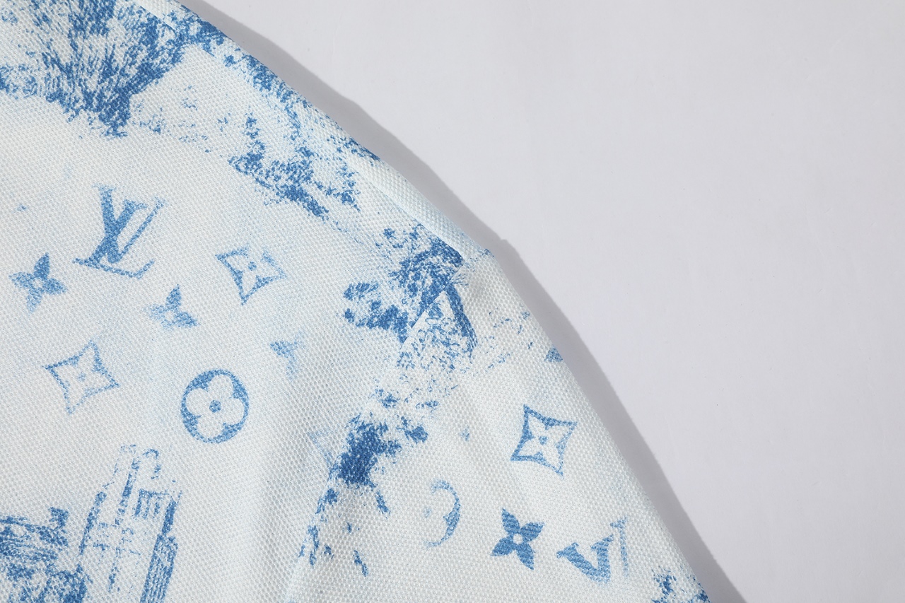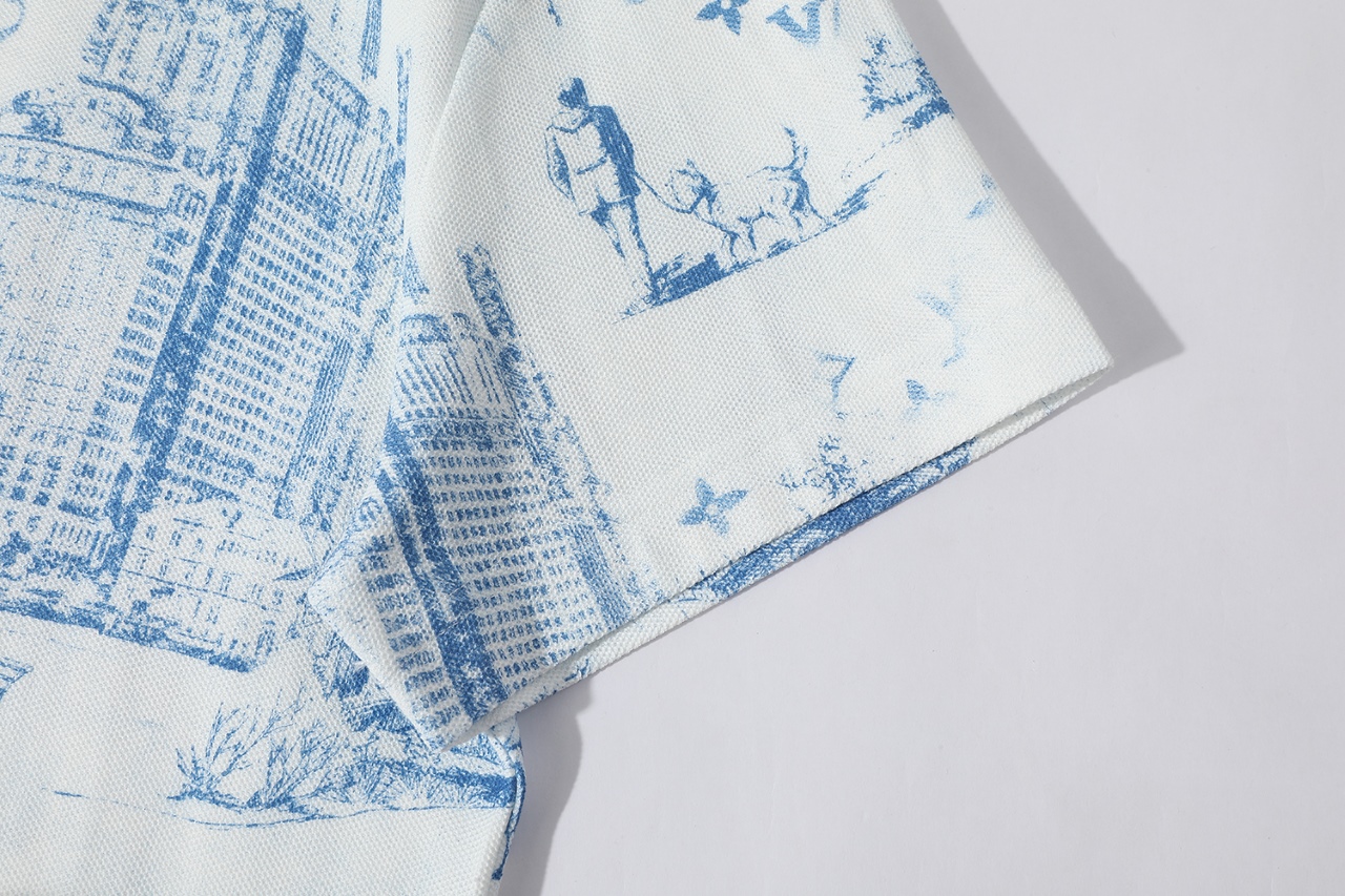 LV 프린트 코튼 피케 반팔 티셔츠
