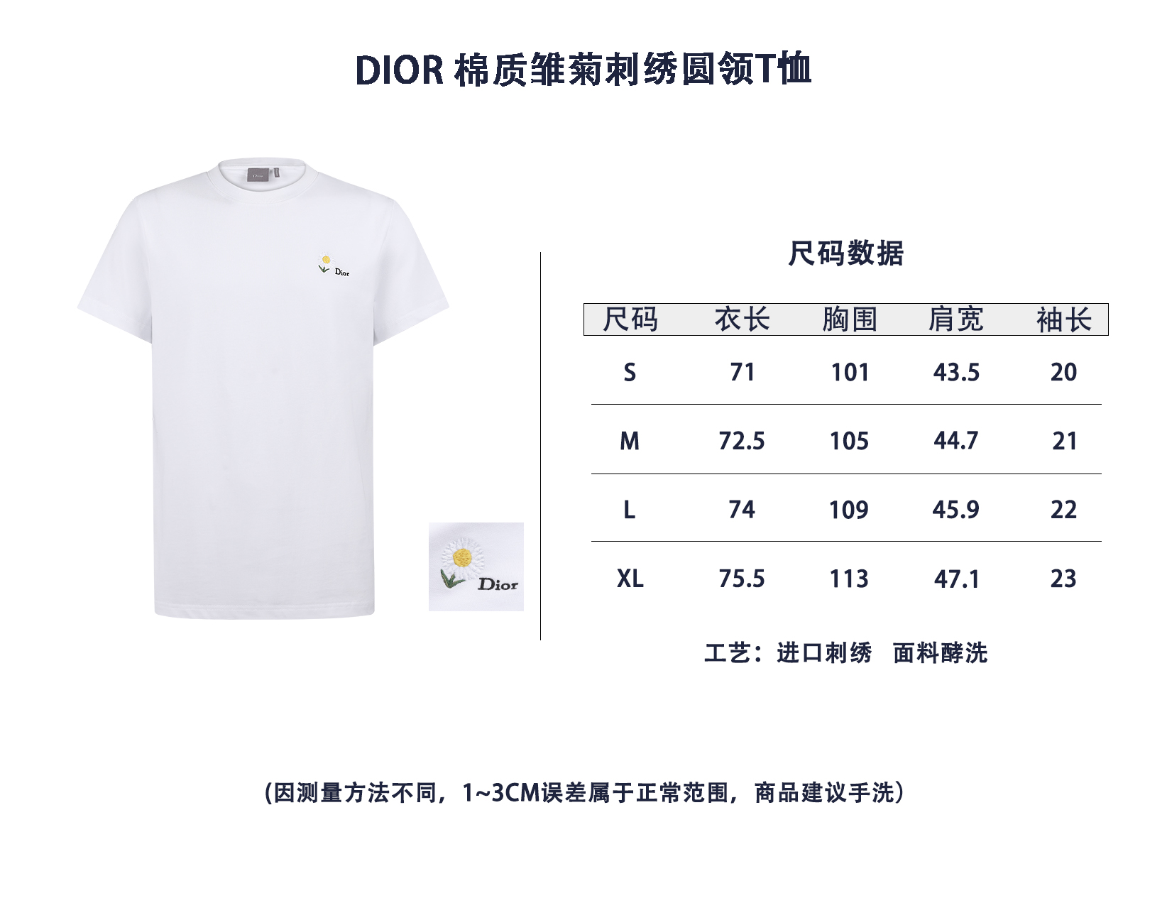디올 코튼데이지 자수 크루넥 티셔츠
