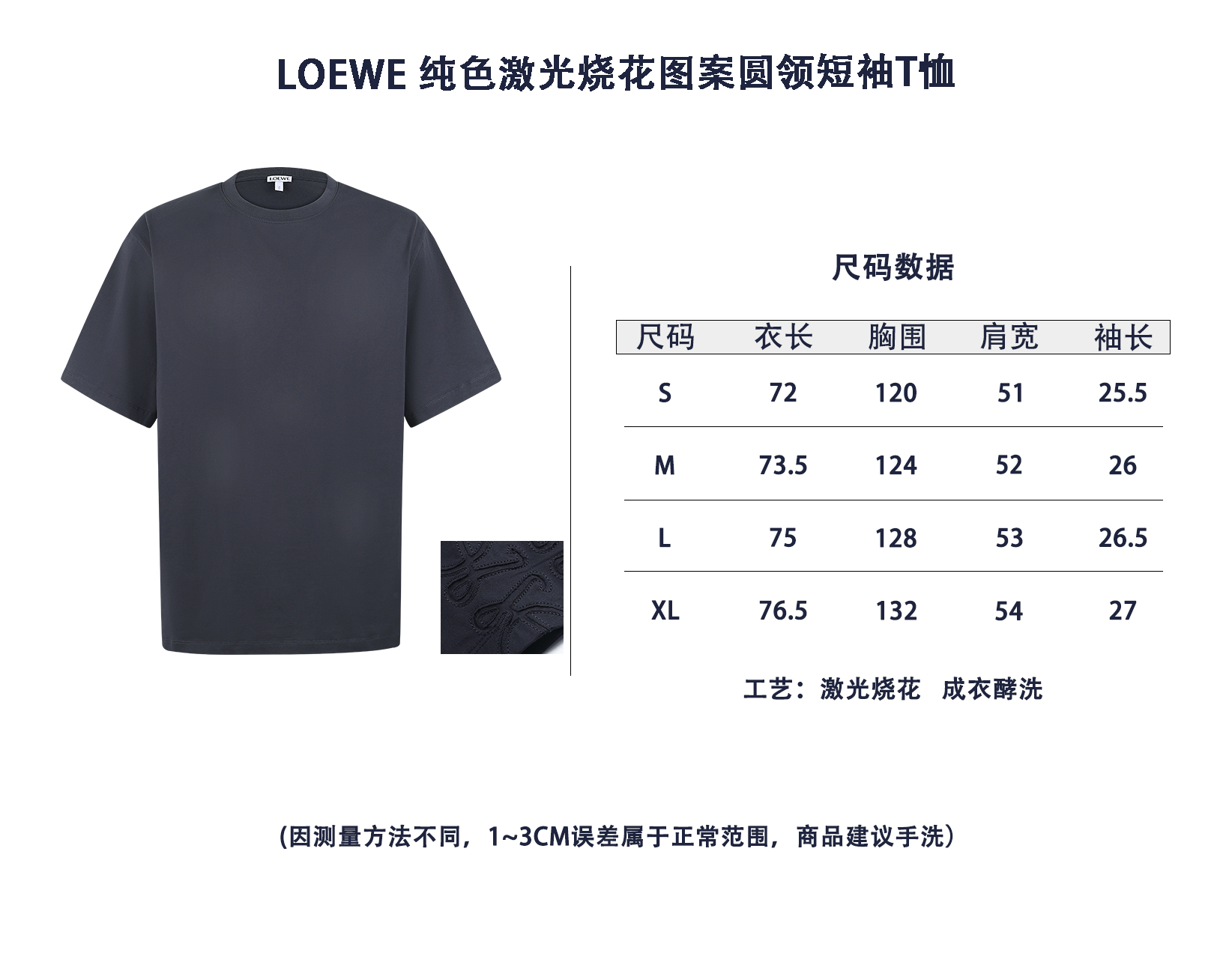로에베 레이져 번트 패턴 라운드넥 반팔 티셔츠