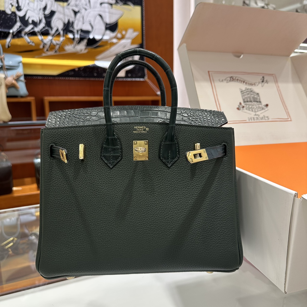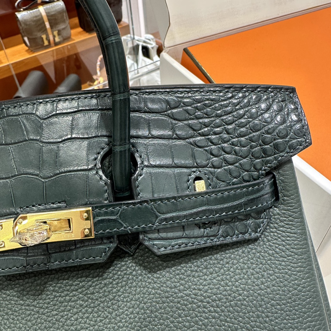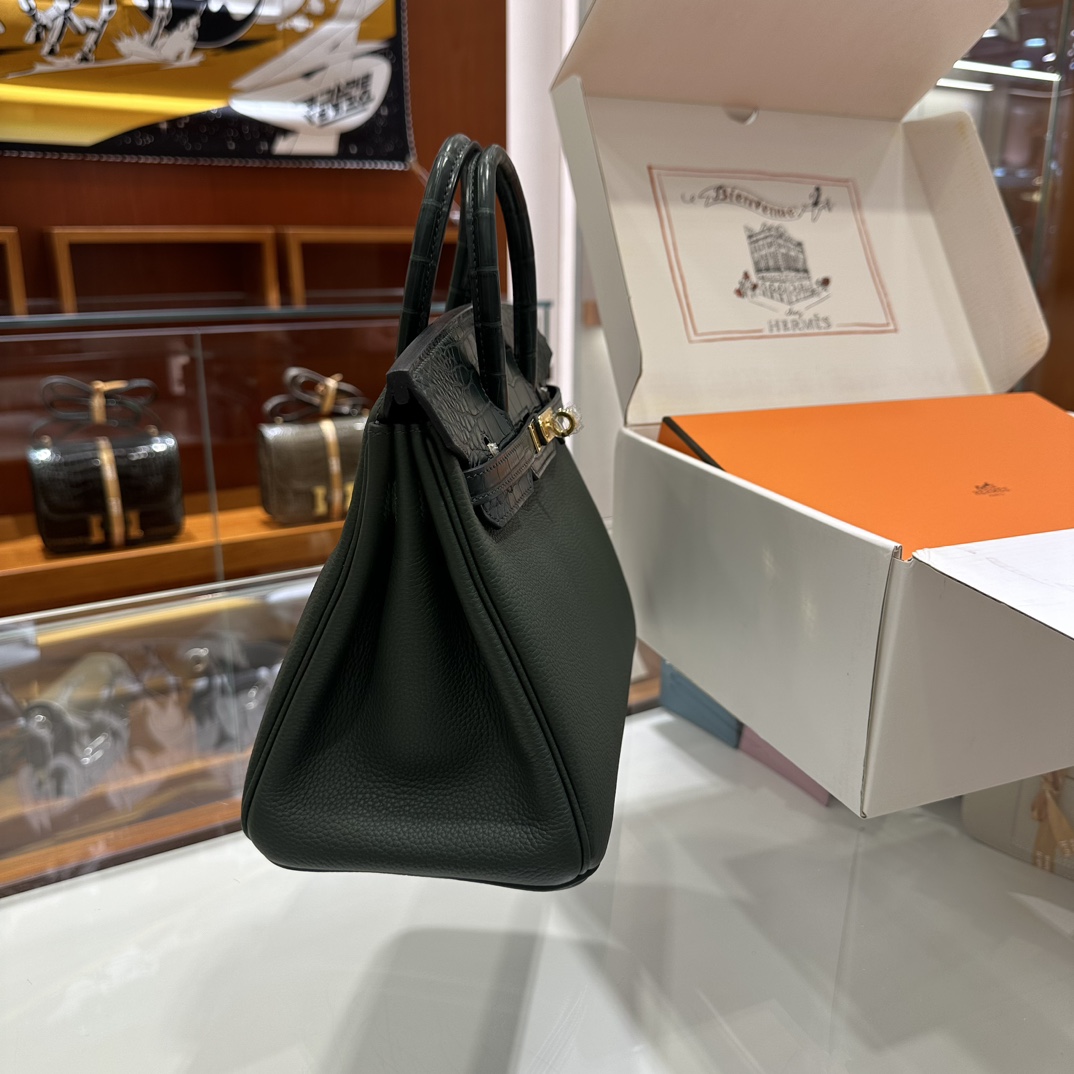 에르메스 버킨 25 르투르네 토고 & 크로커다일 블랙 골드 하드웨어
