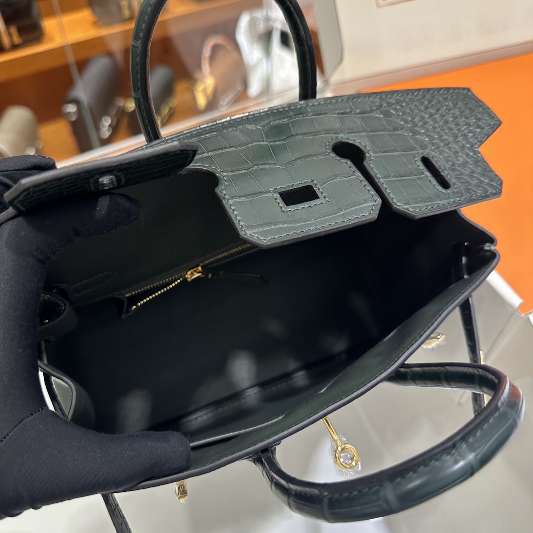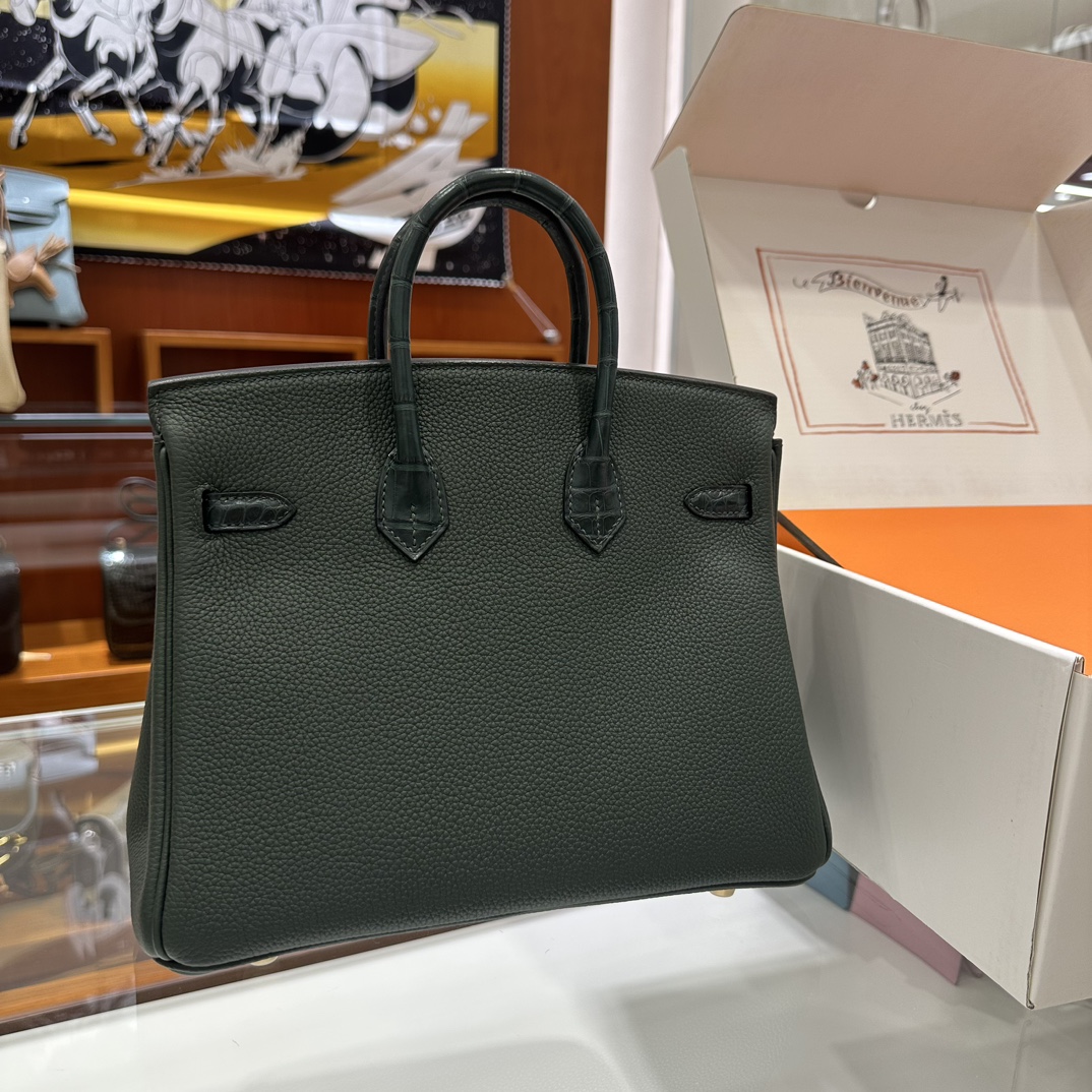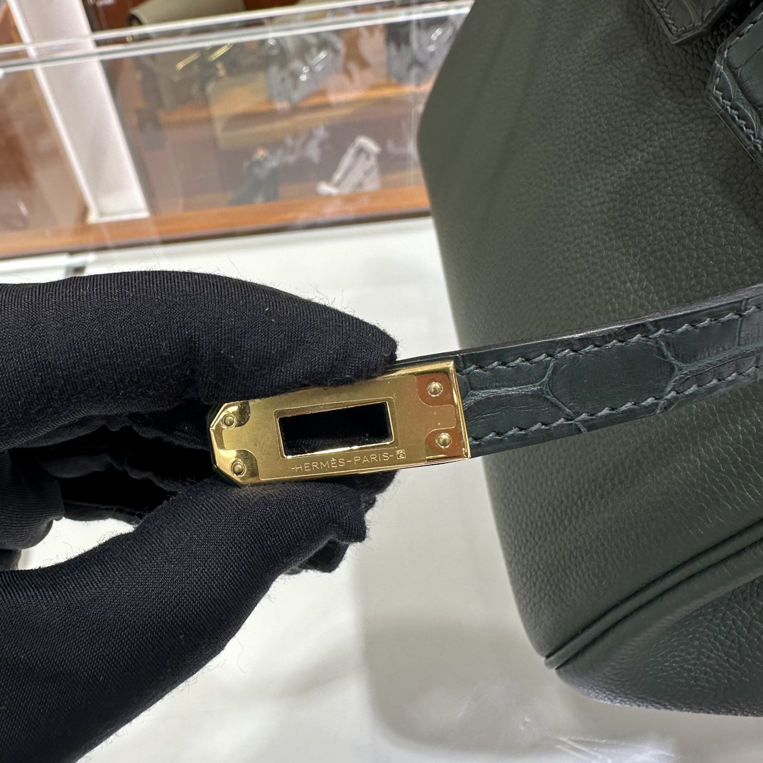 에르메스 버킨 25 르투르네 토고 & 크로커다일 블랙 골드 하드웨어