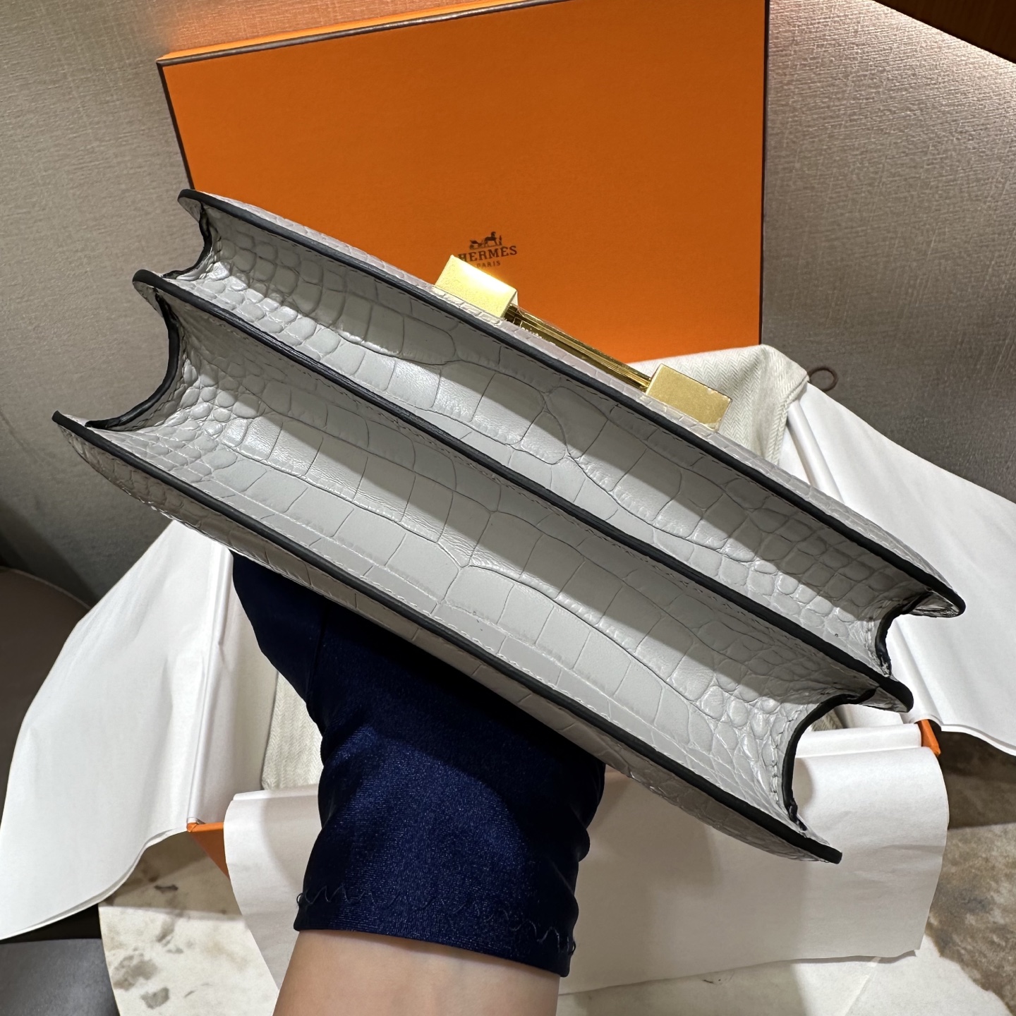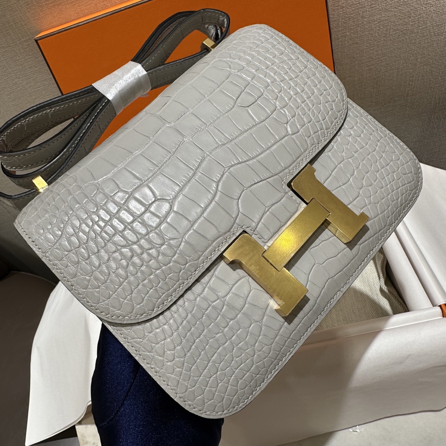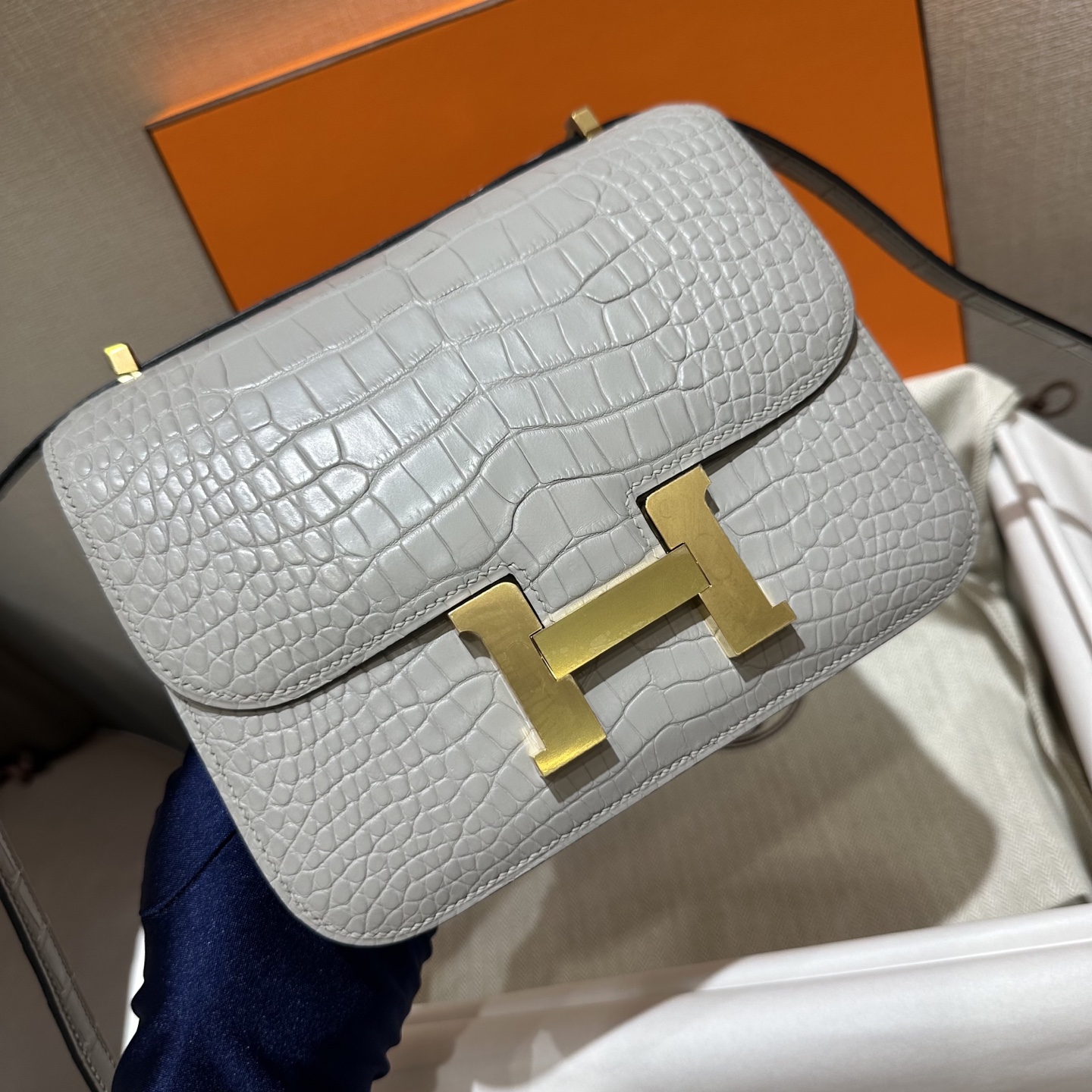 에르메스 콘스탄스 18 엘리게이터 골드 하드웨어