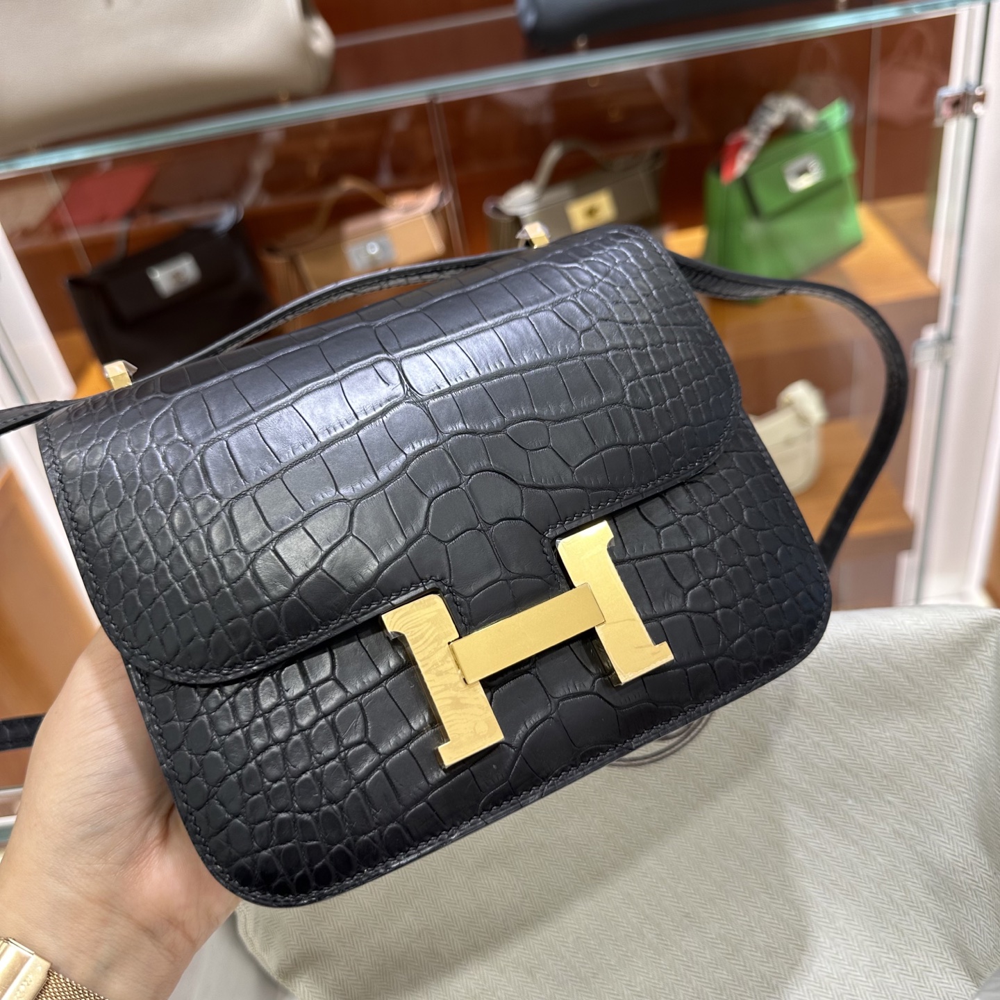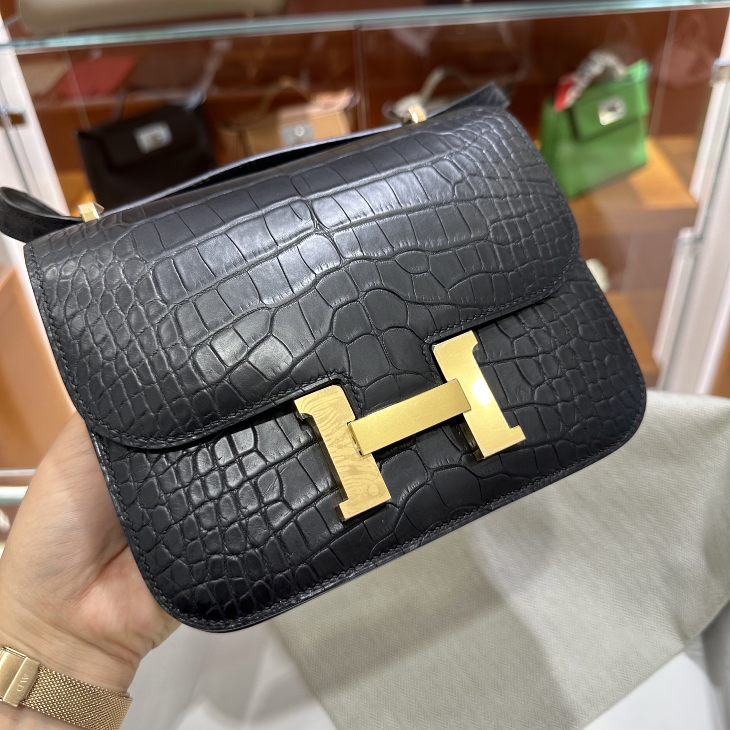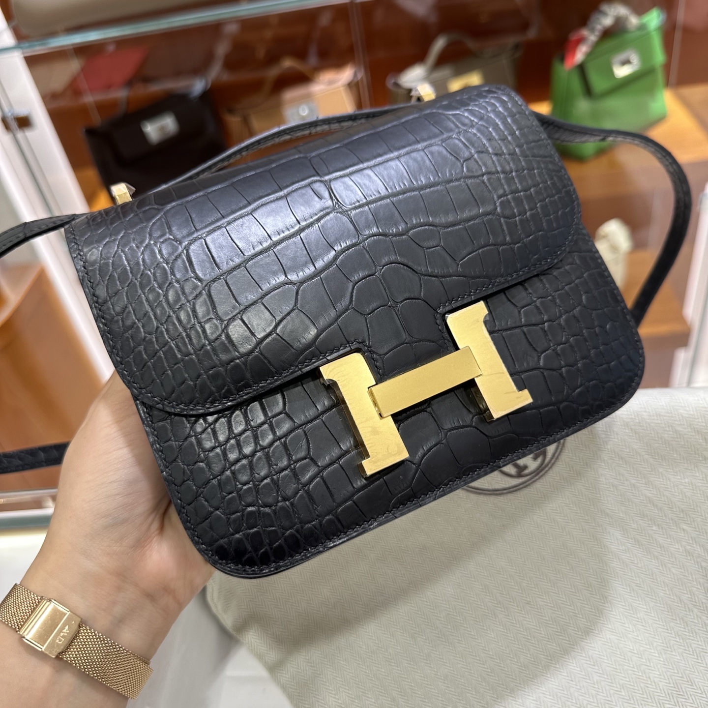 에르메스 콘스탄스 18 엘리게이터 골드 하드웨어