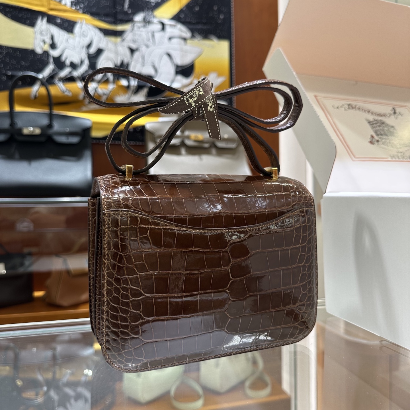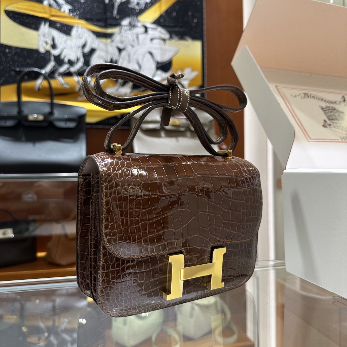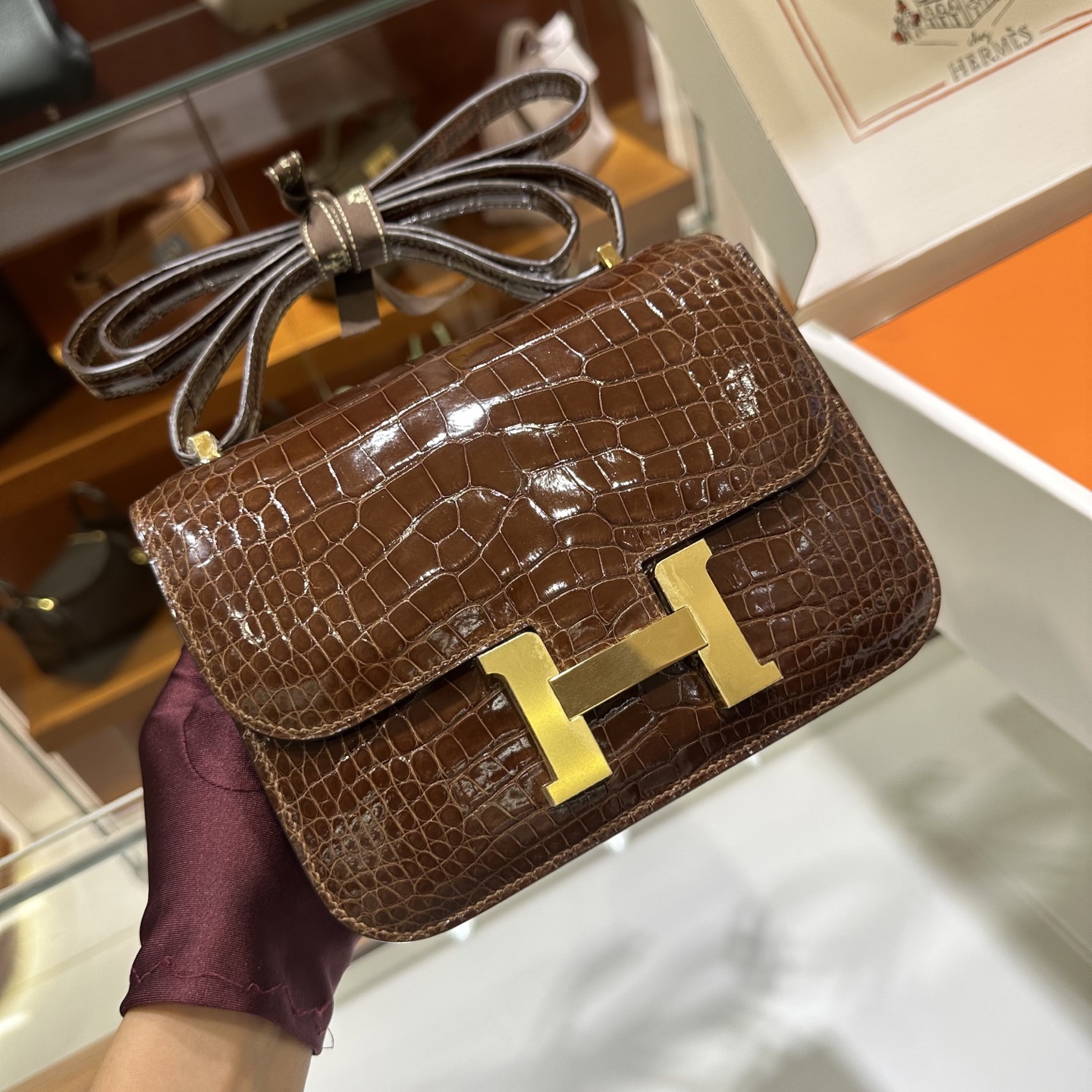 에르메스 콘스탄스 18 엘리게이터 골드 하드웨어