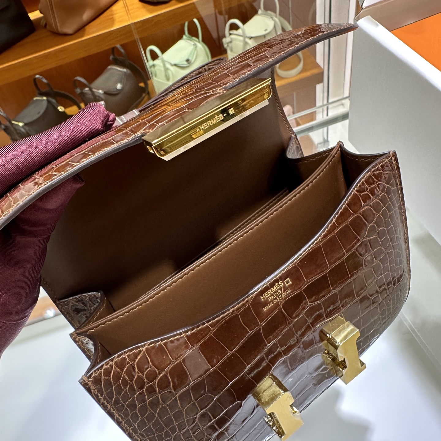 에르메스 콘스탄스 18 엘리게이터 골드 하드웨어 > 가방