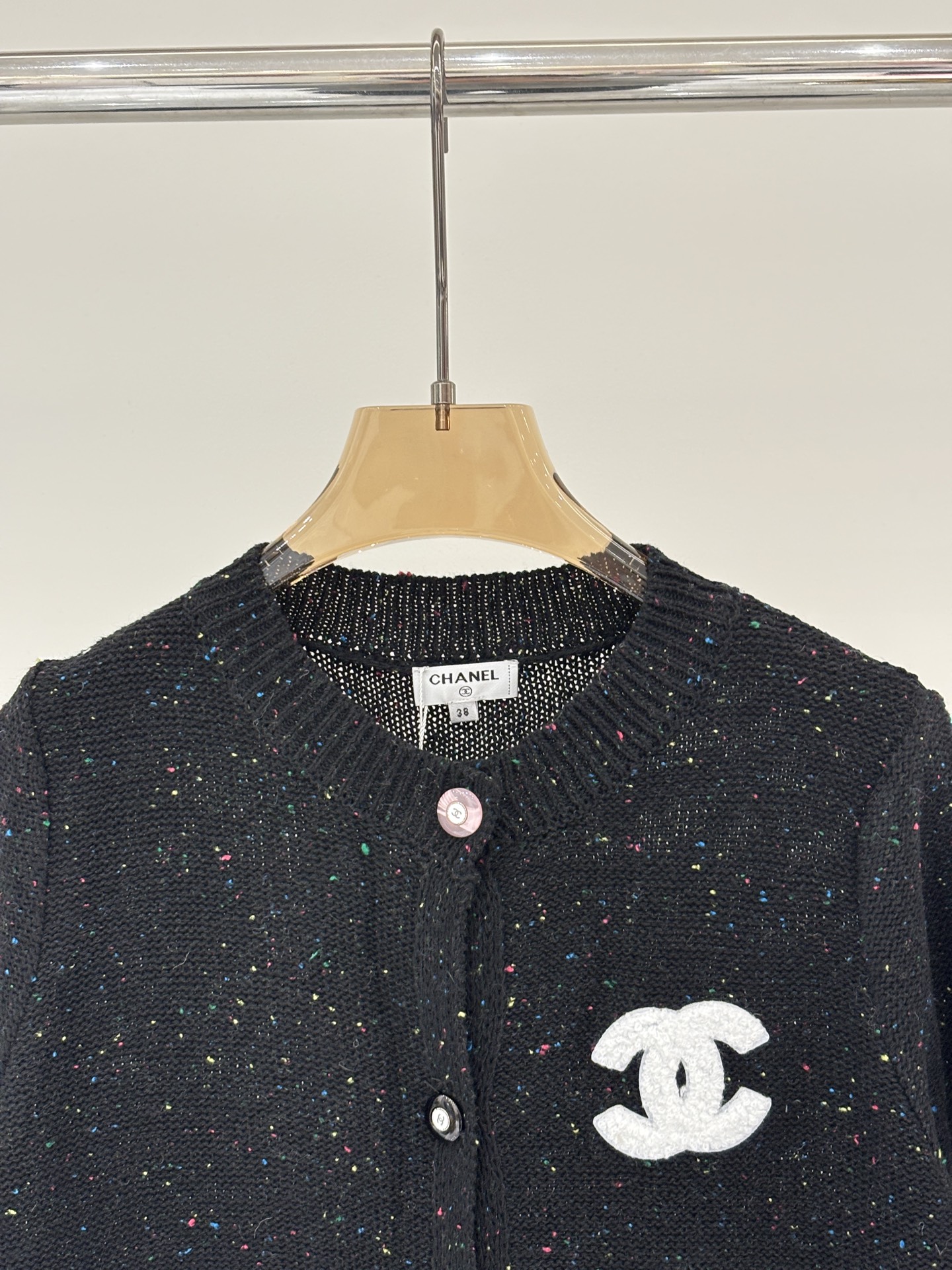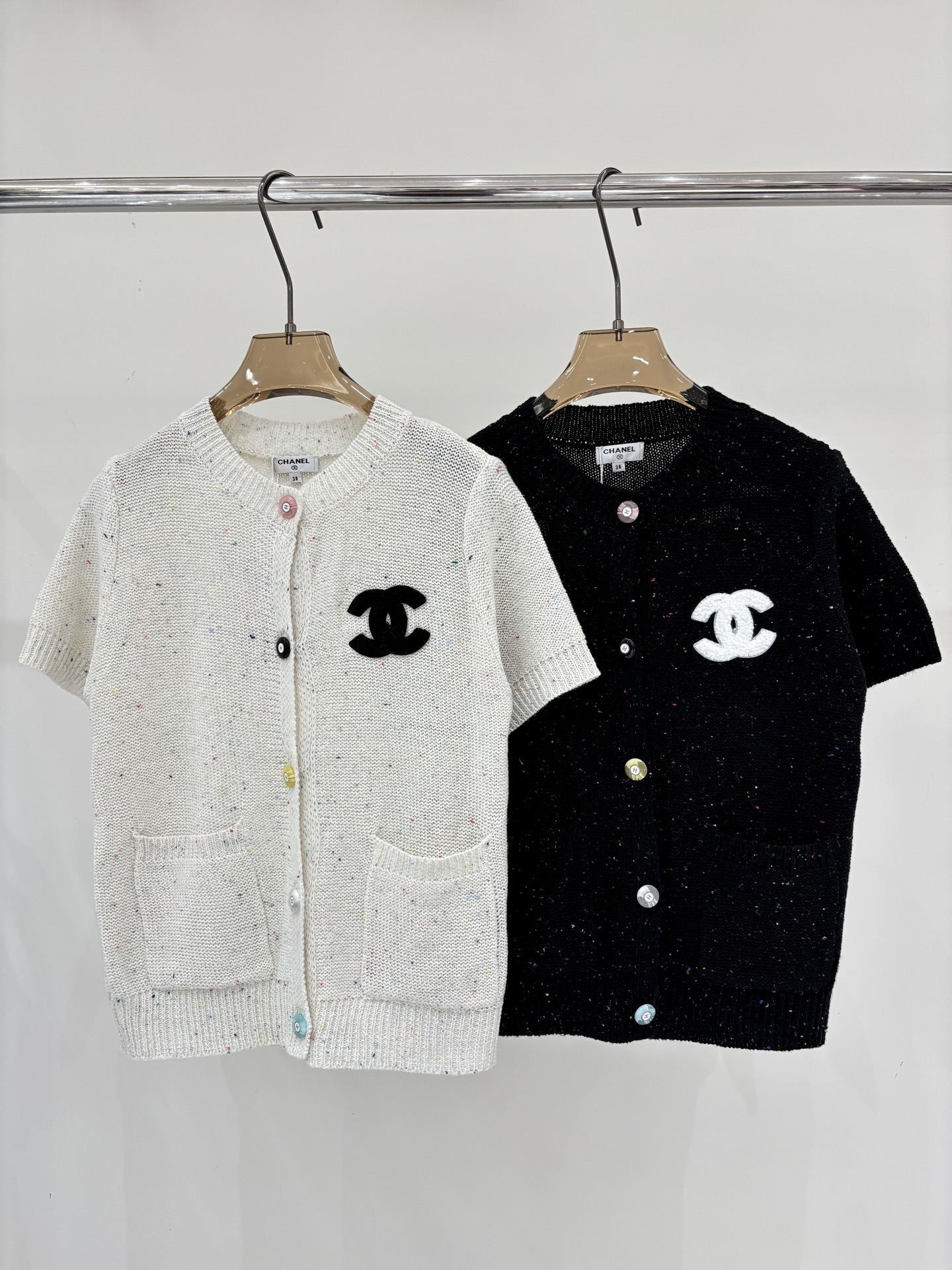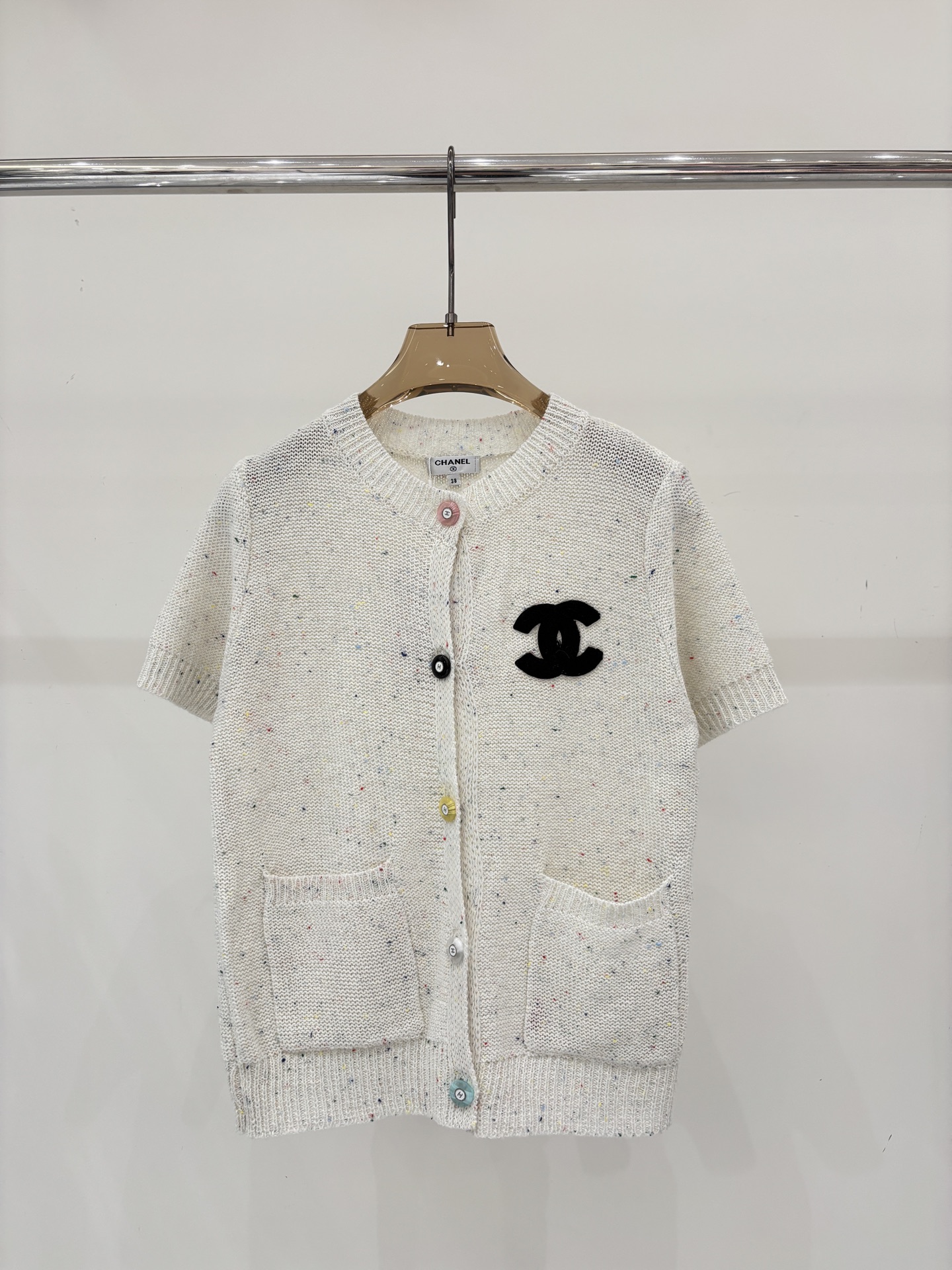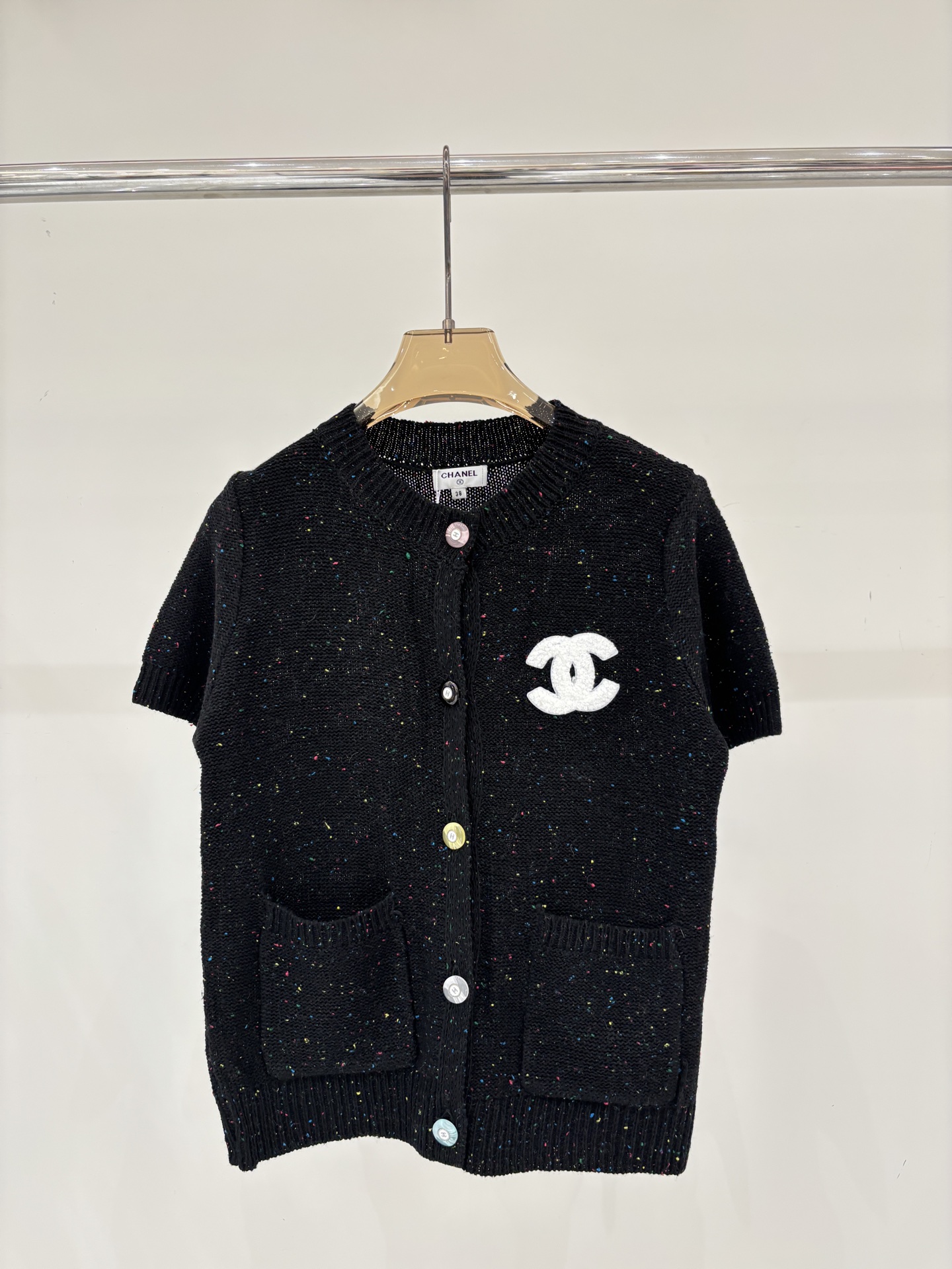 샤넬 모자이크 장식 니트 반팔