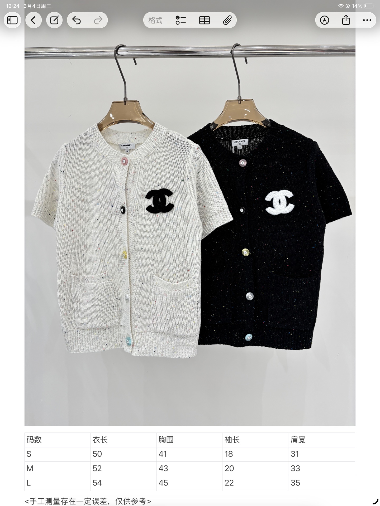 샤넬 무늬 니트 반팔