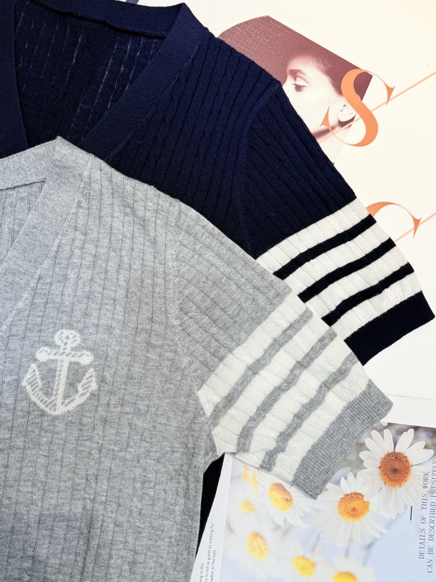 TB 라운드넥 니트 반팔 티셔츠
