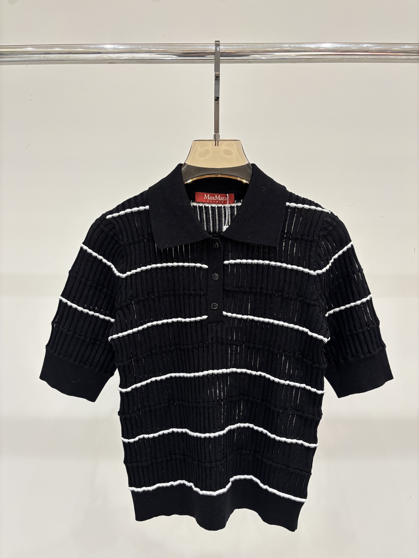 막스마라 라펠 인타르시아 스트라이프 반팔