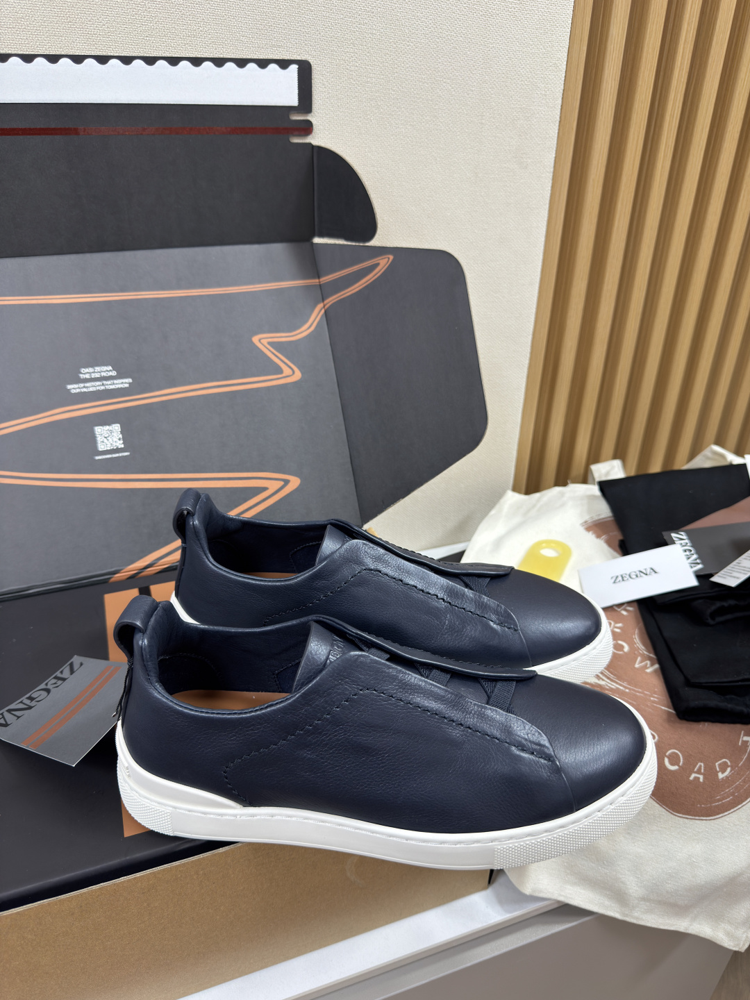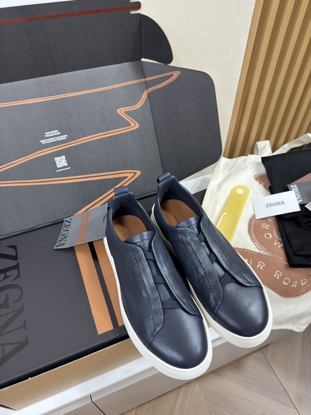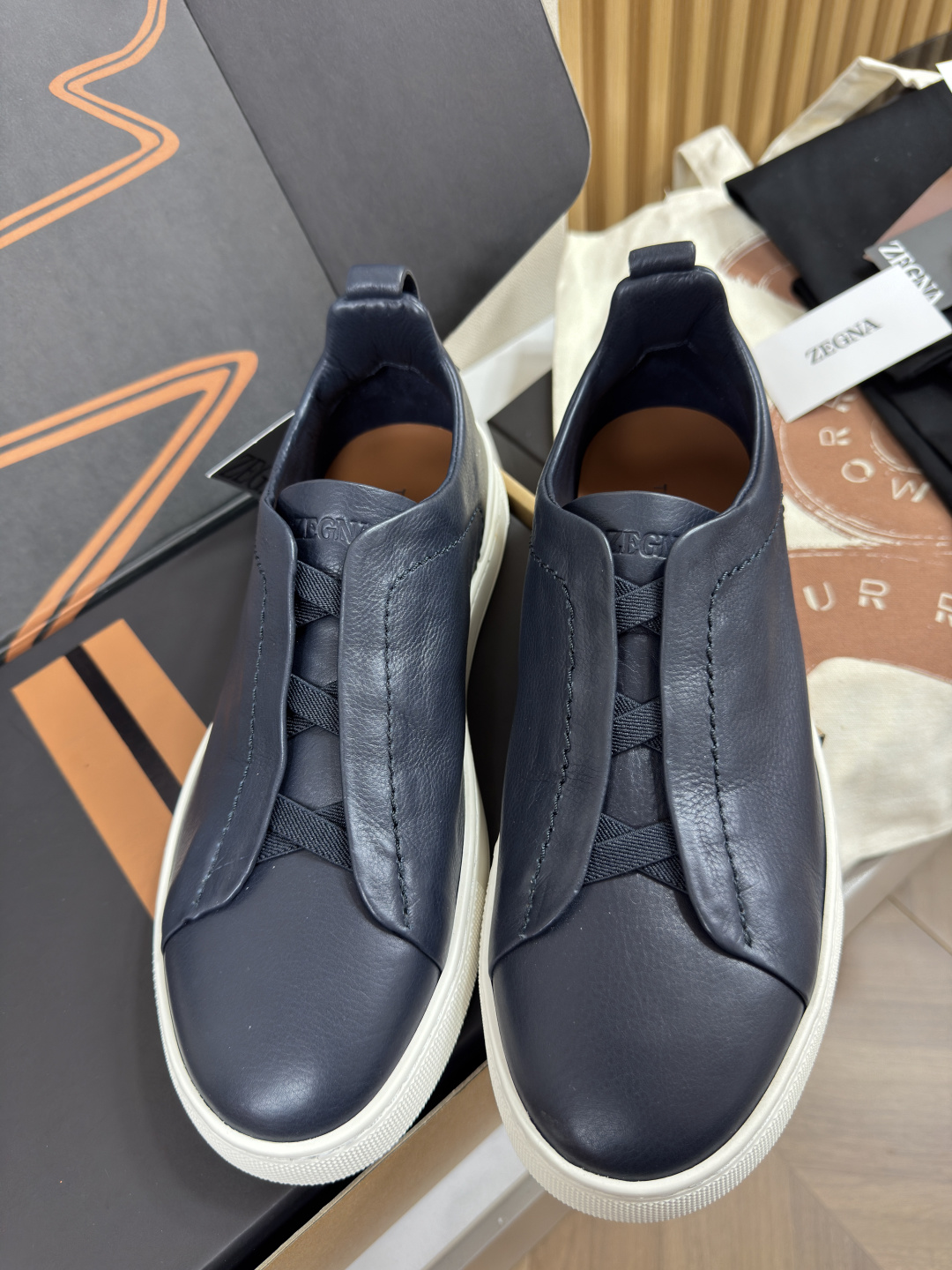 제냐 디어스킨 트리플 스티치 스니커즈