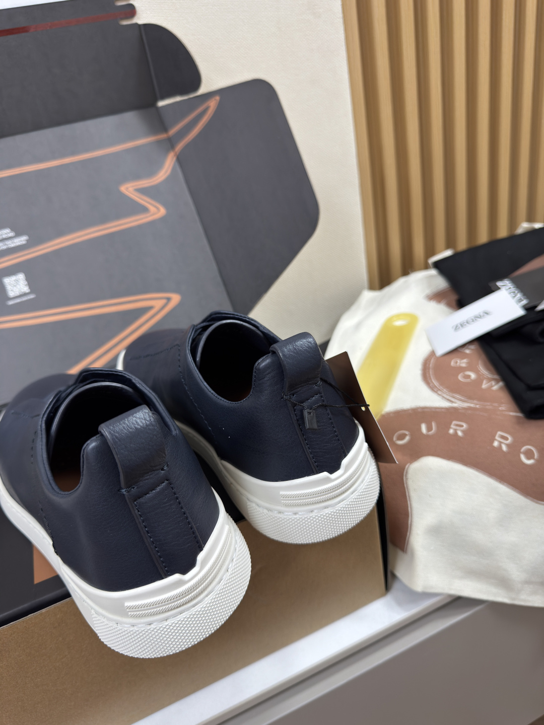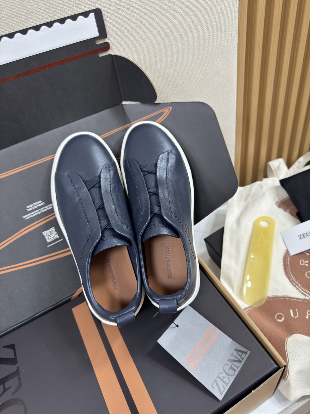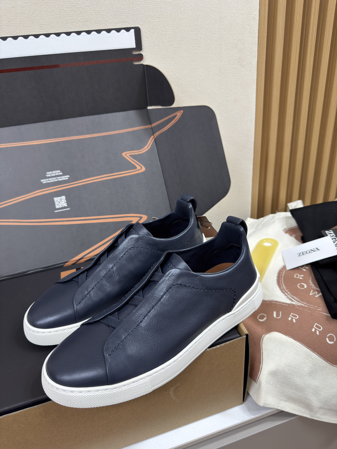 제냐 디어스킨 트리플 스티치 스니커즈