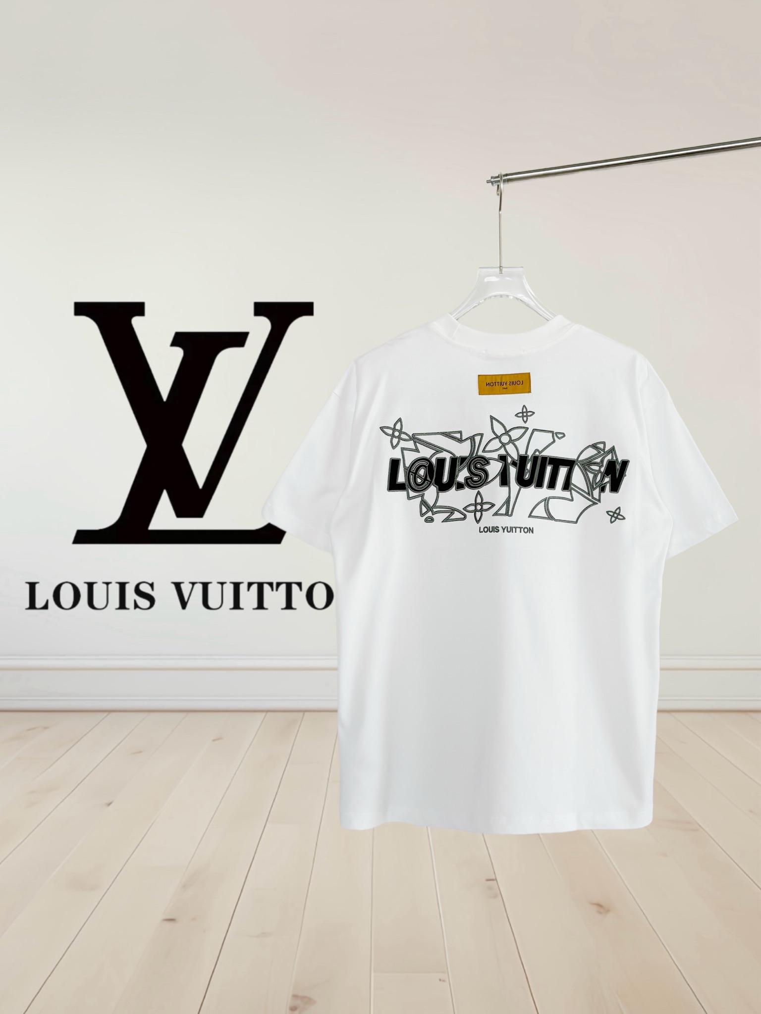 LV 자수 라운드넥 티셔츠
