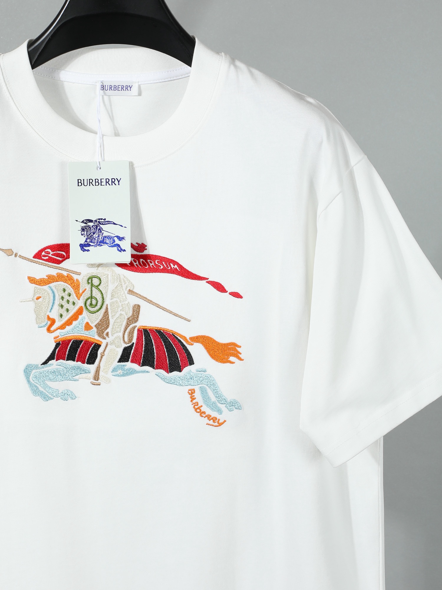 전마 자수 숏 슬리브 티셔츠