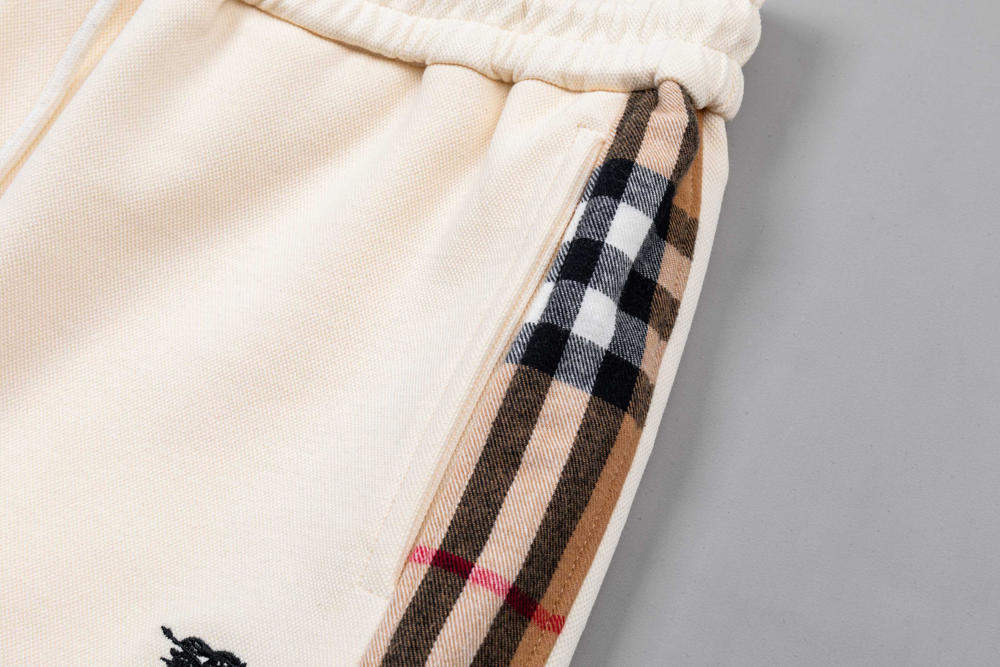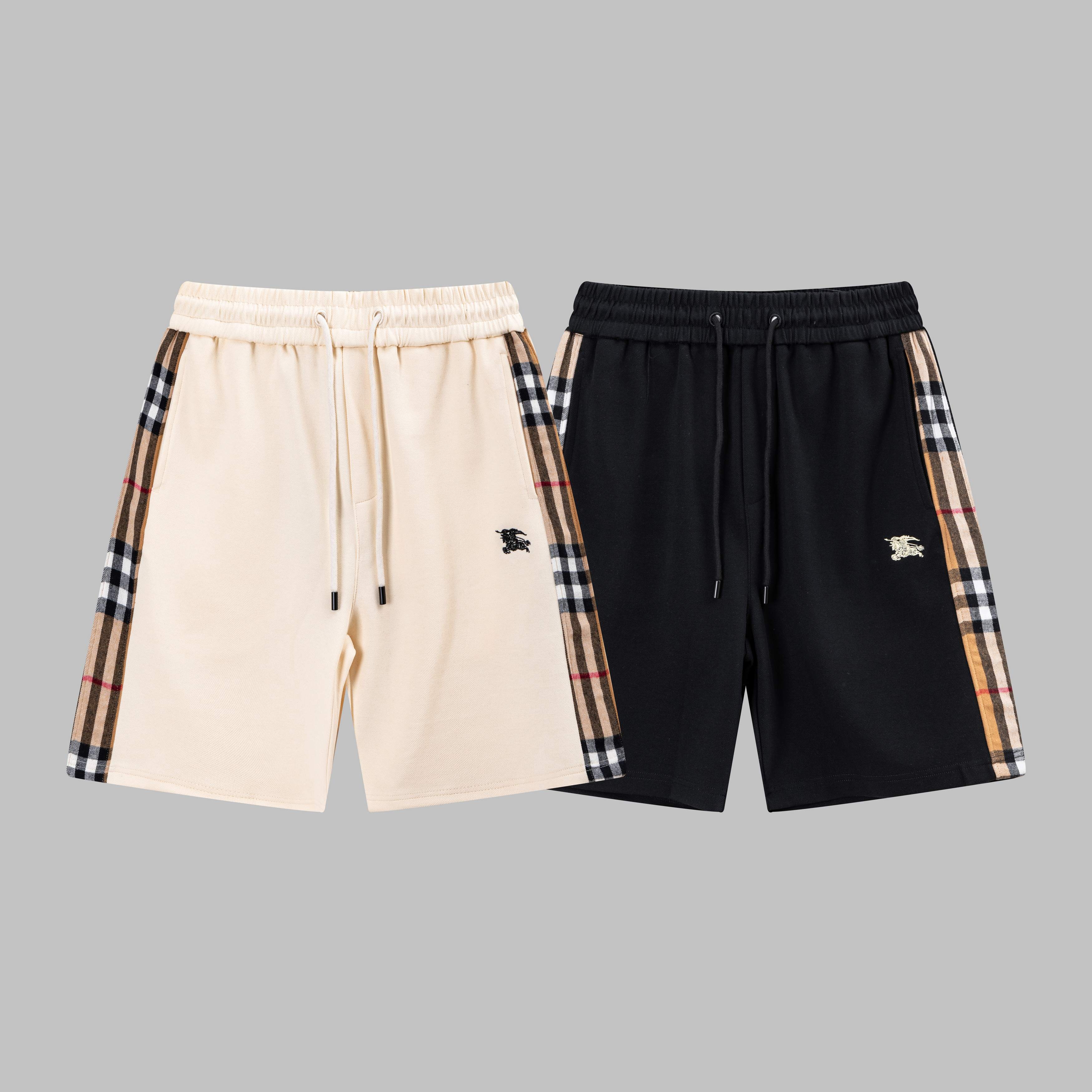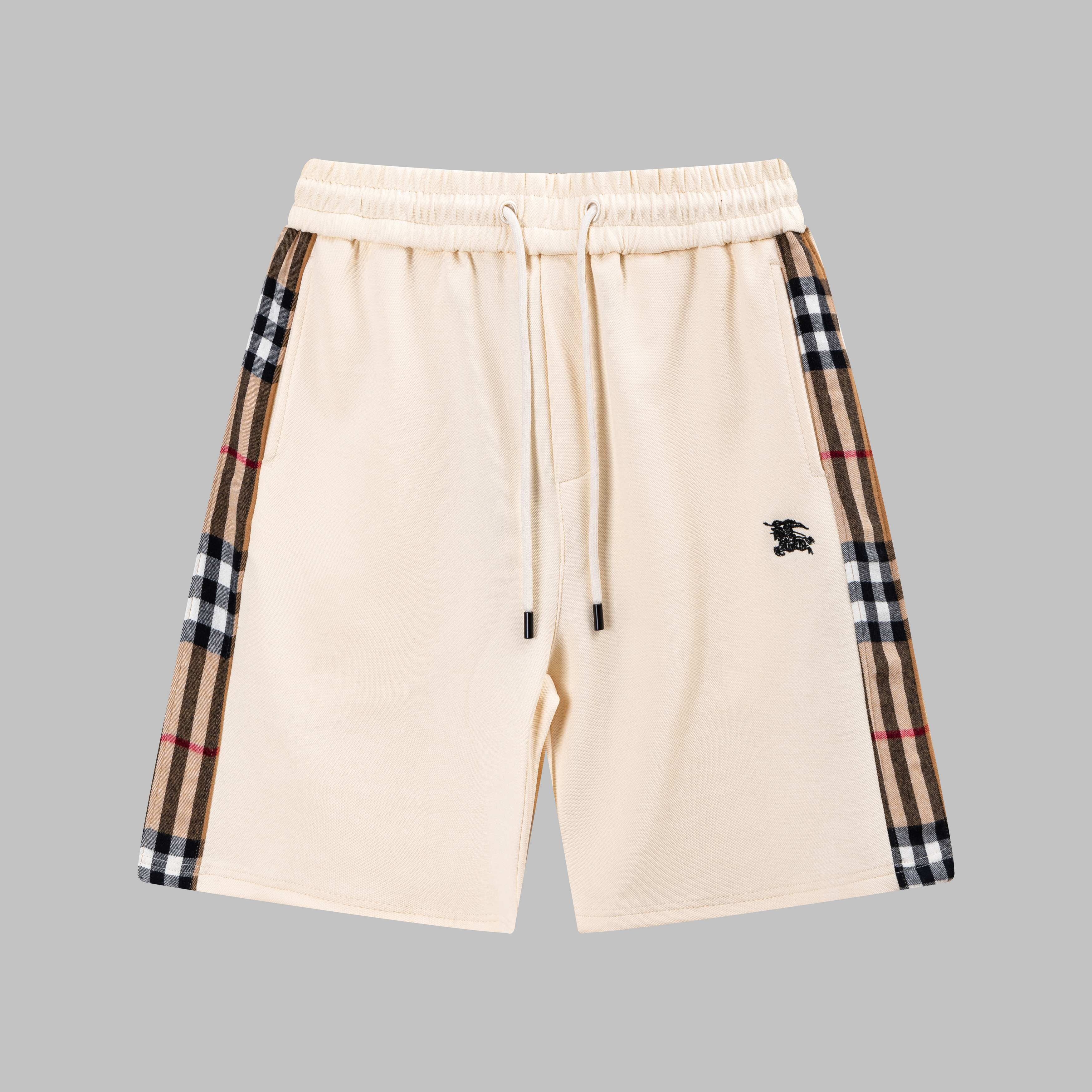 자수 전마 측면 체크 패턴 배색 5부 반바지