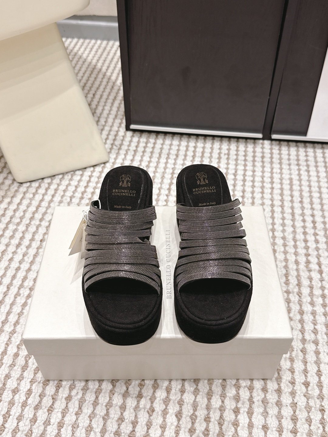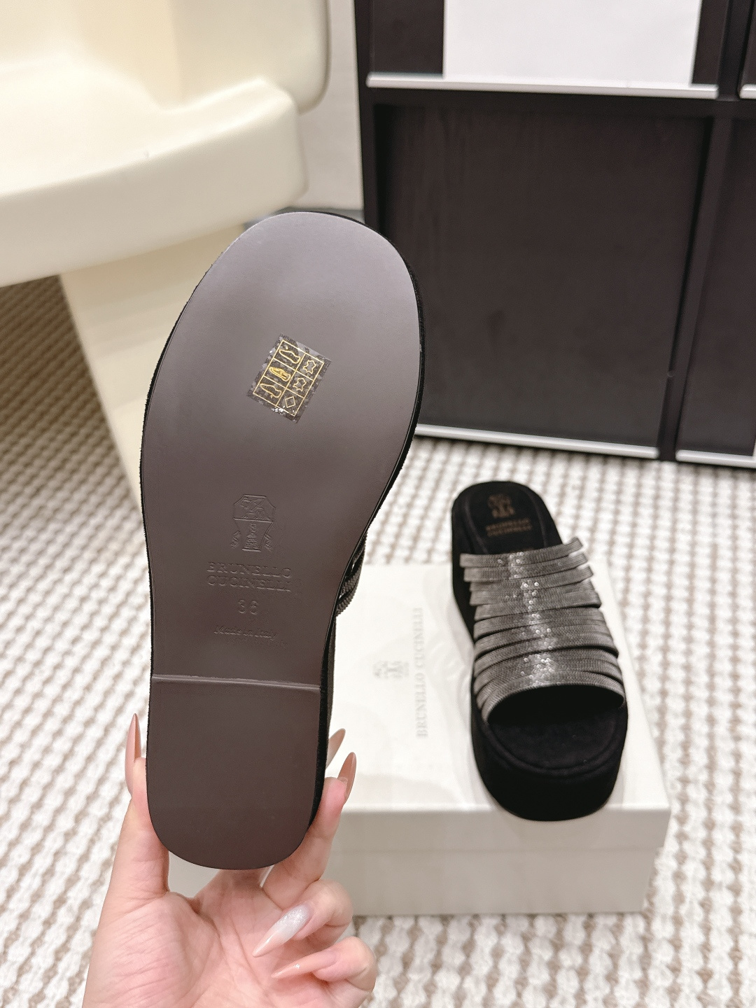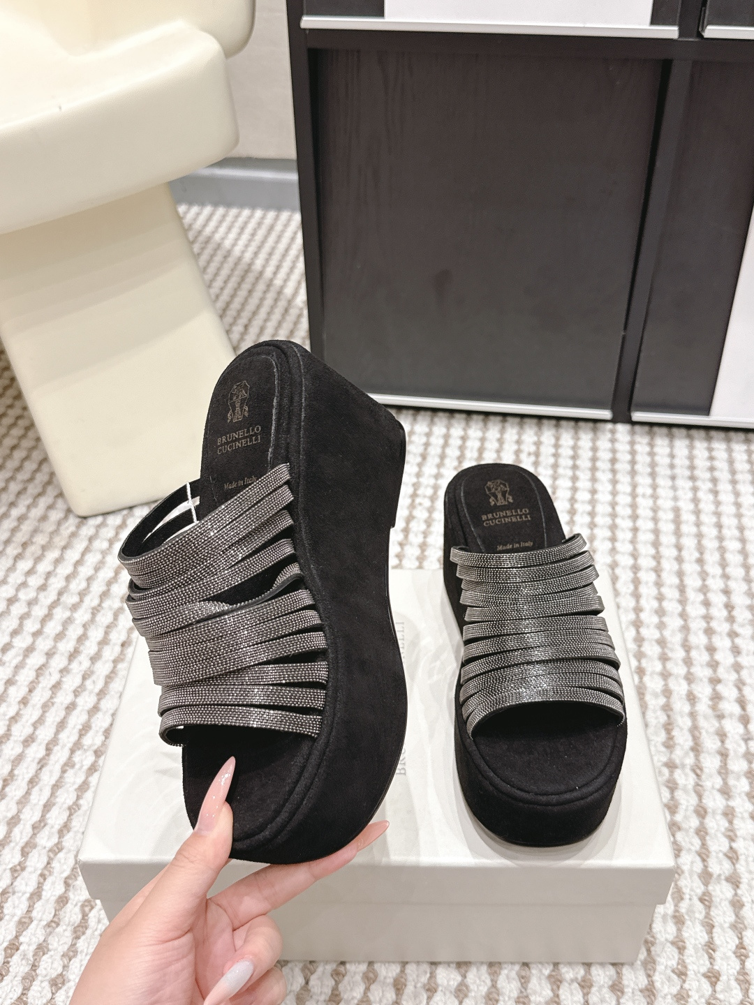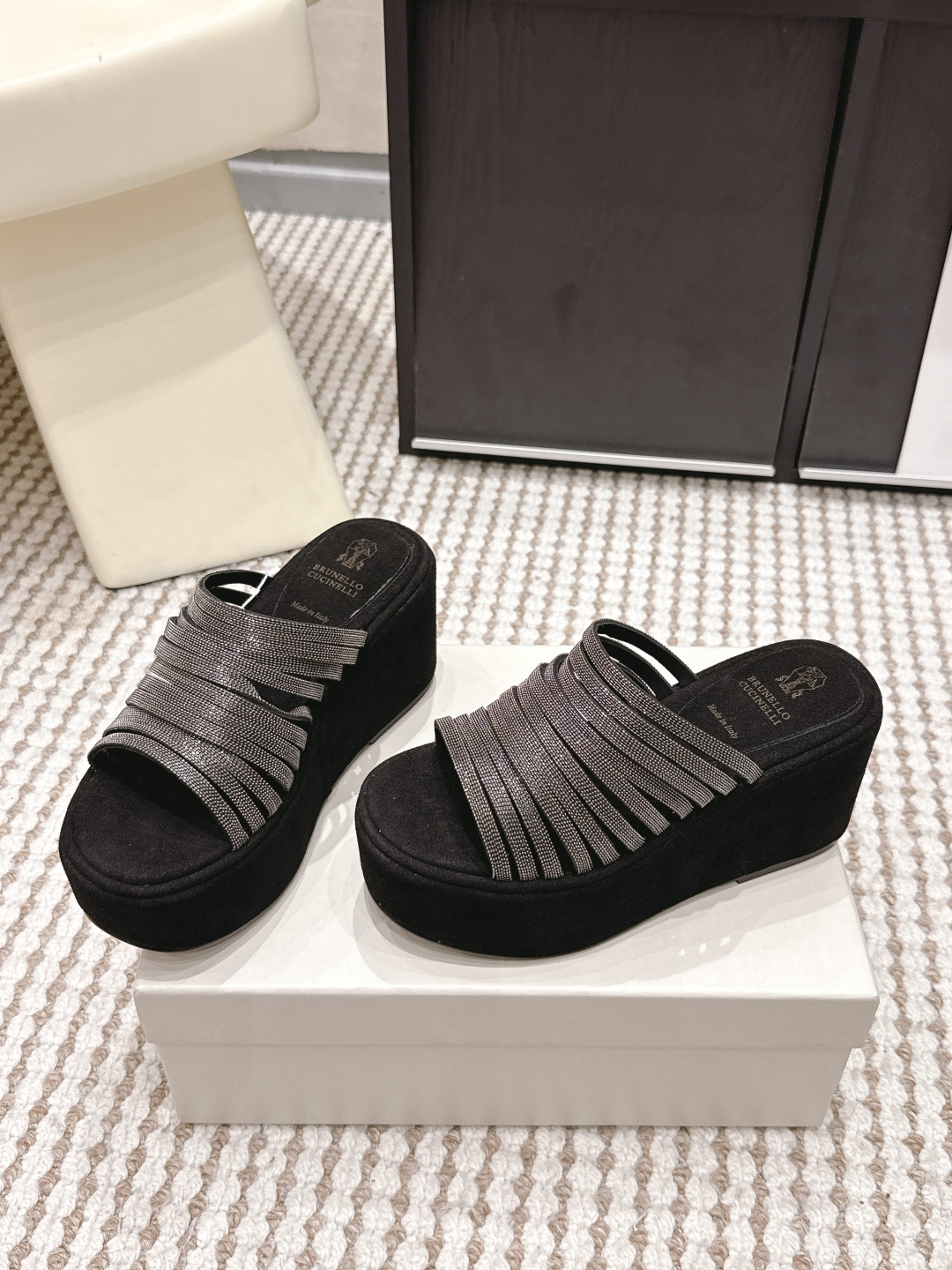 두꺼운 밑창 경사 굽 슬리퍼