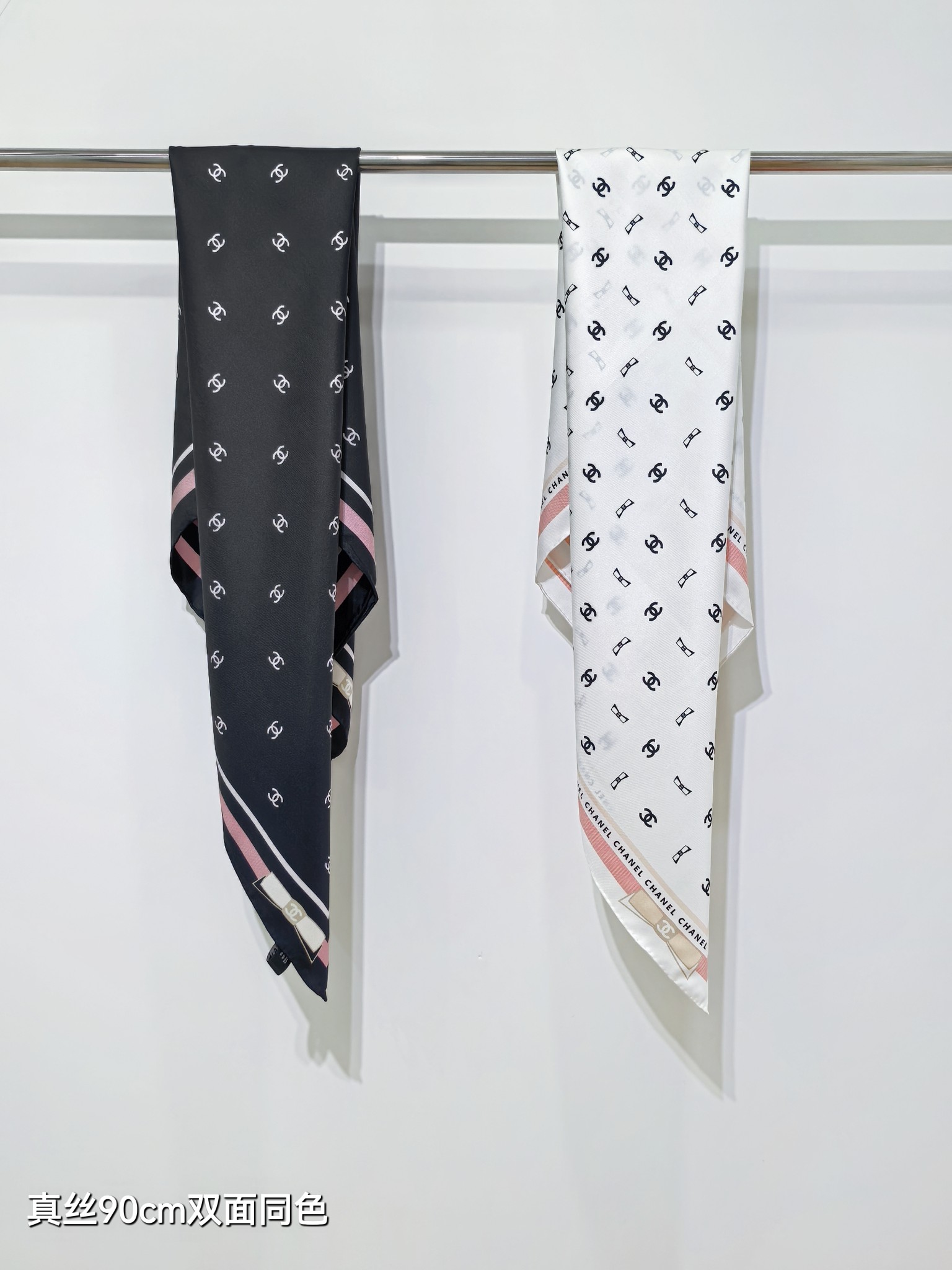 양면 사선 무늬 실크 스카프
