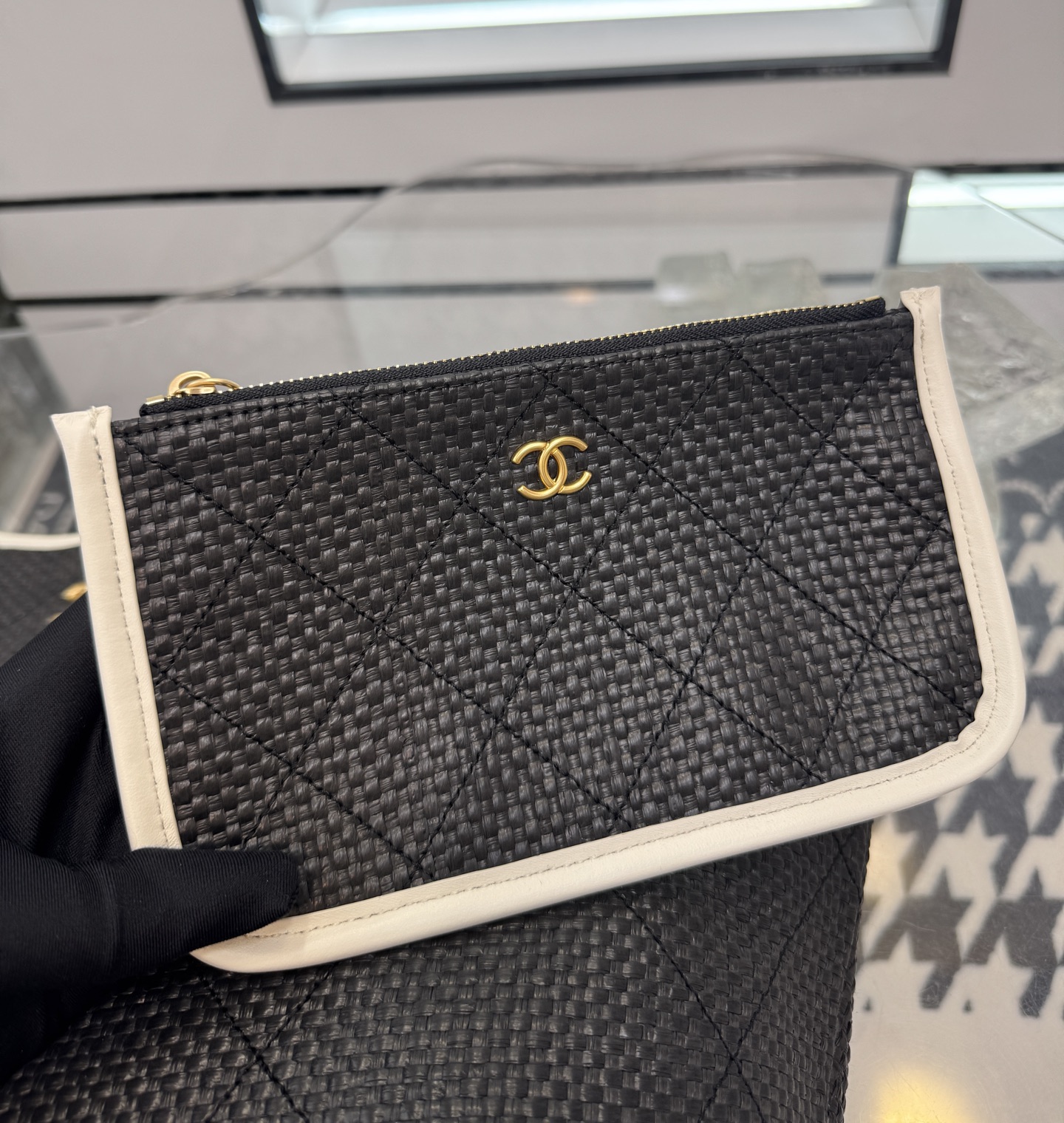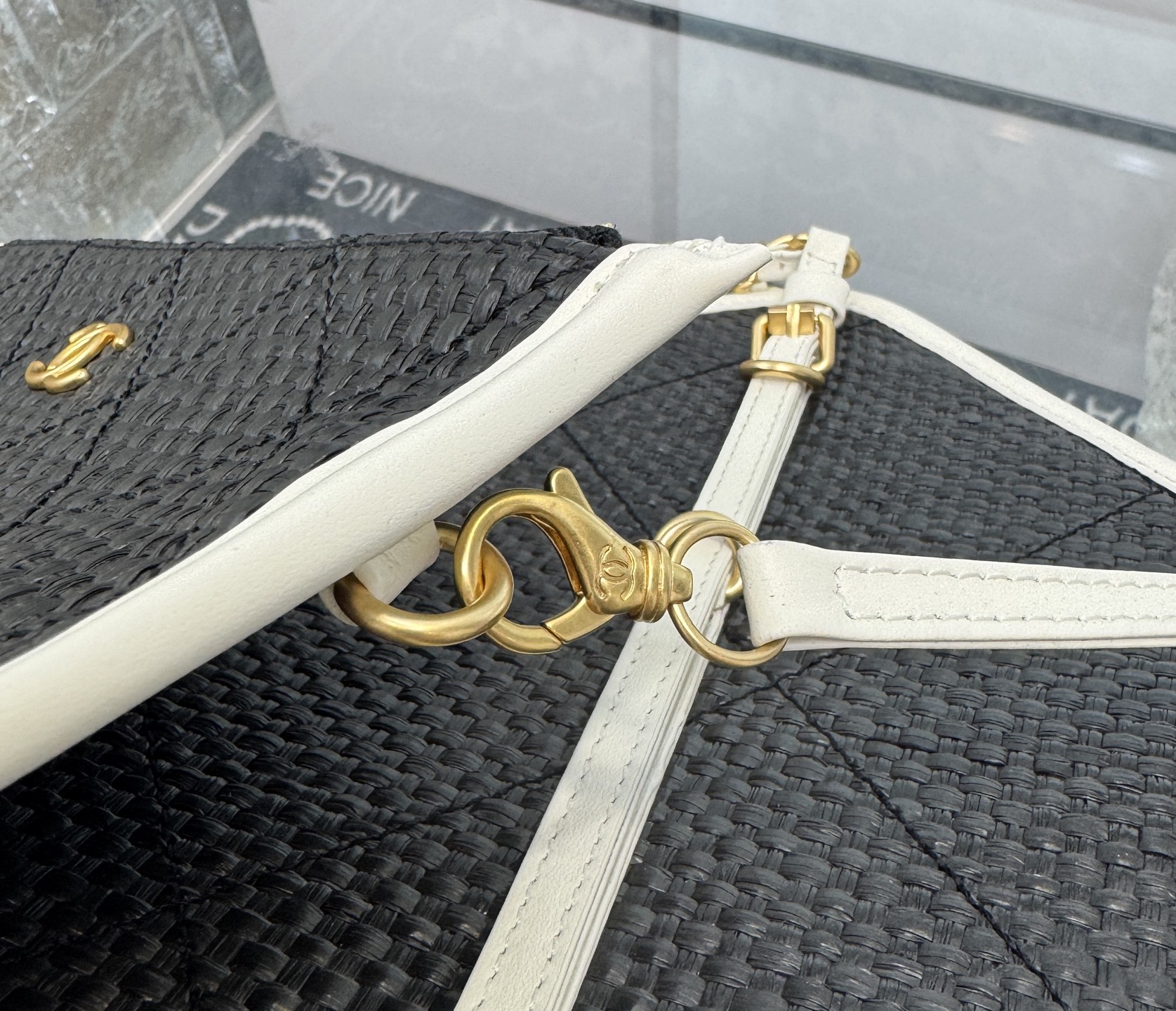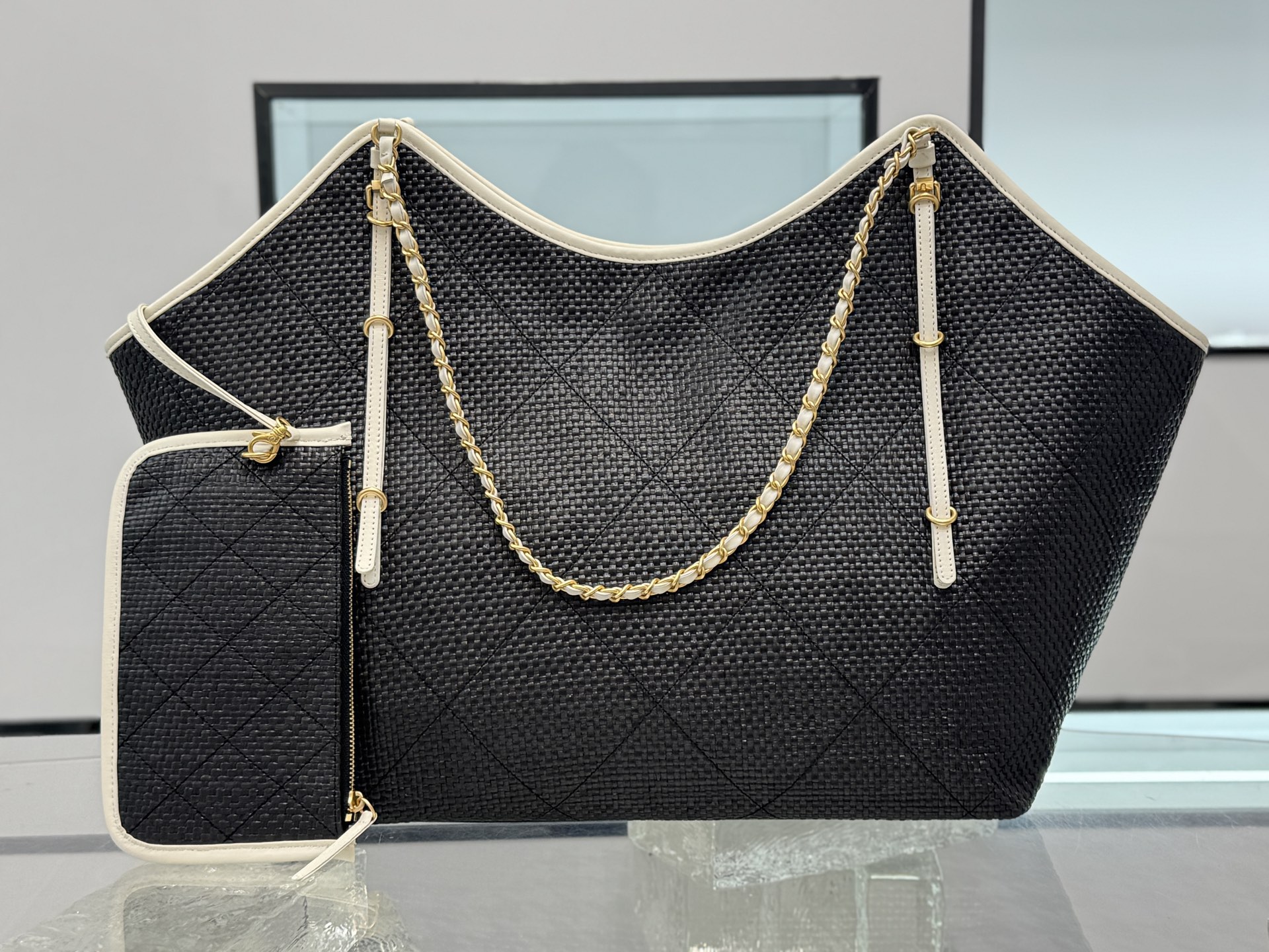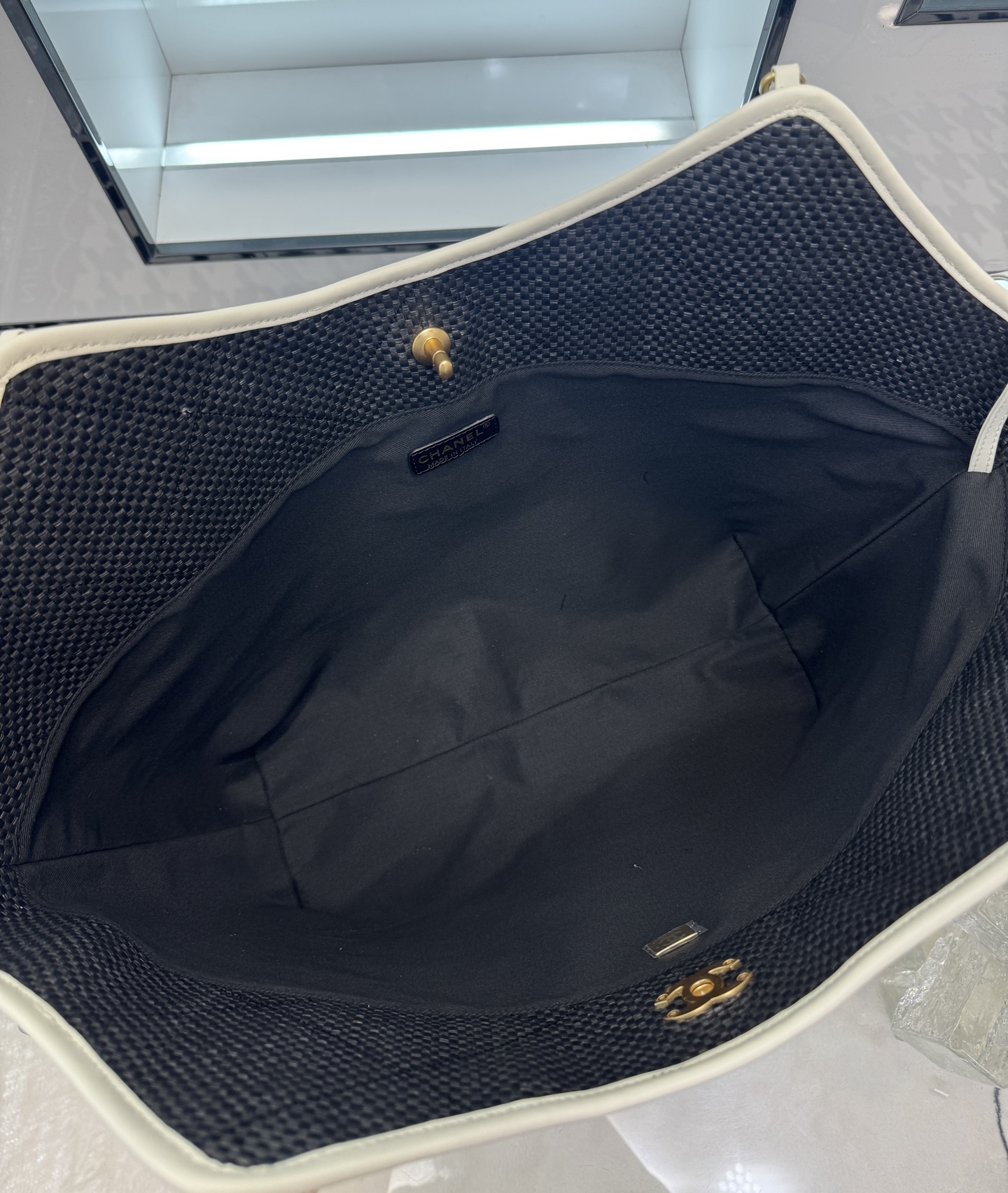 블랙 화이트 위빙 토트백