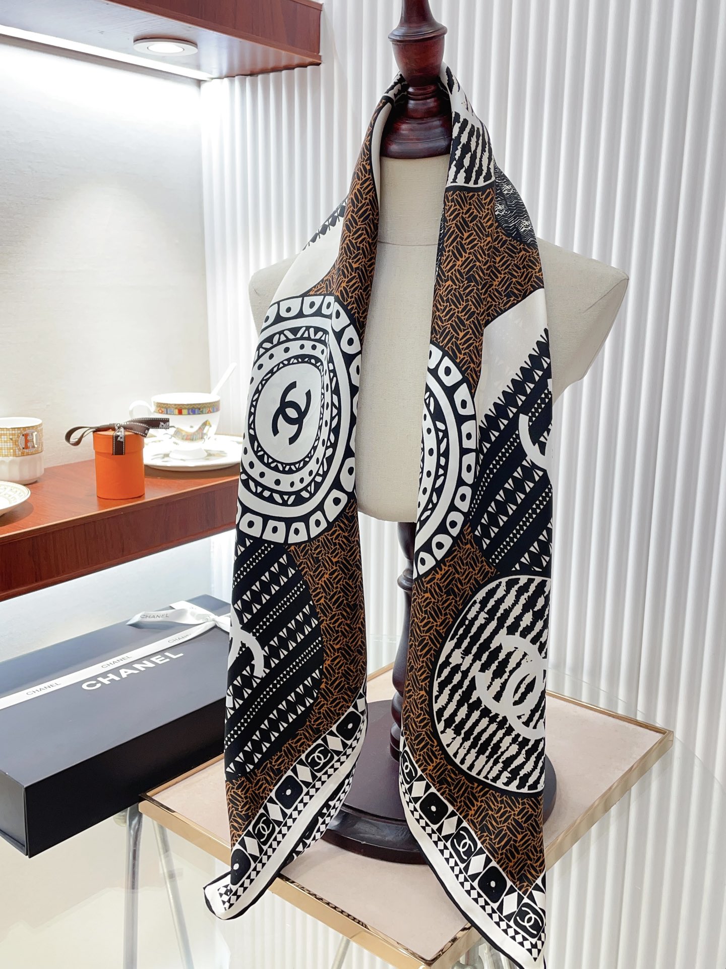 빗살 실크 스퀘어 스카프