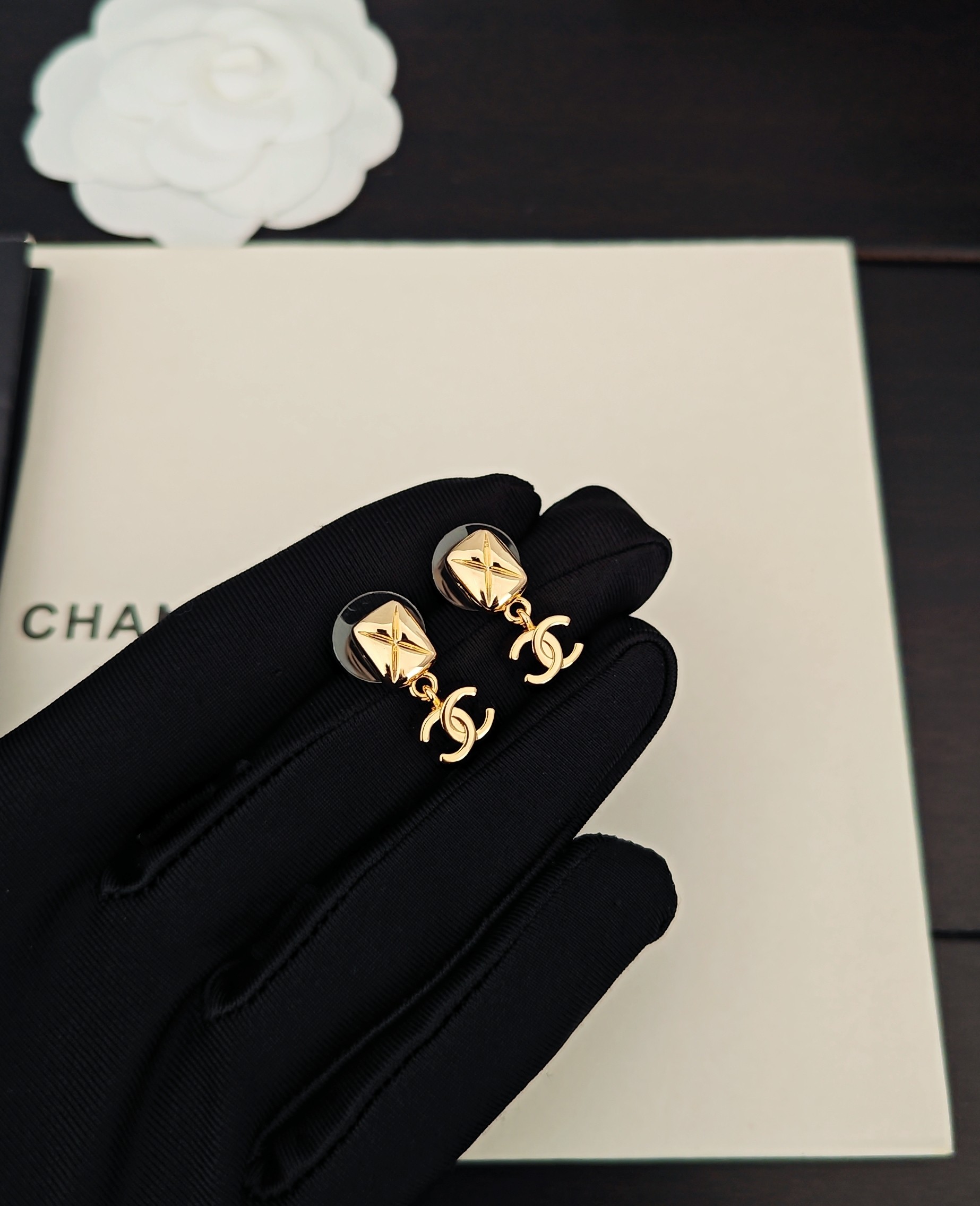 금 사각 CC 귀걸이 > 악세사리