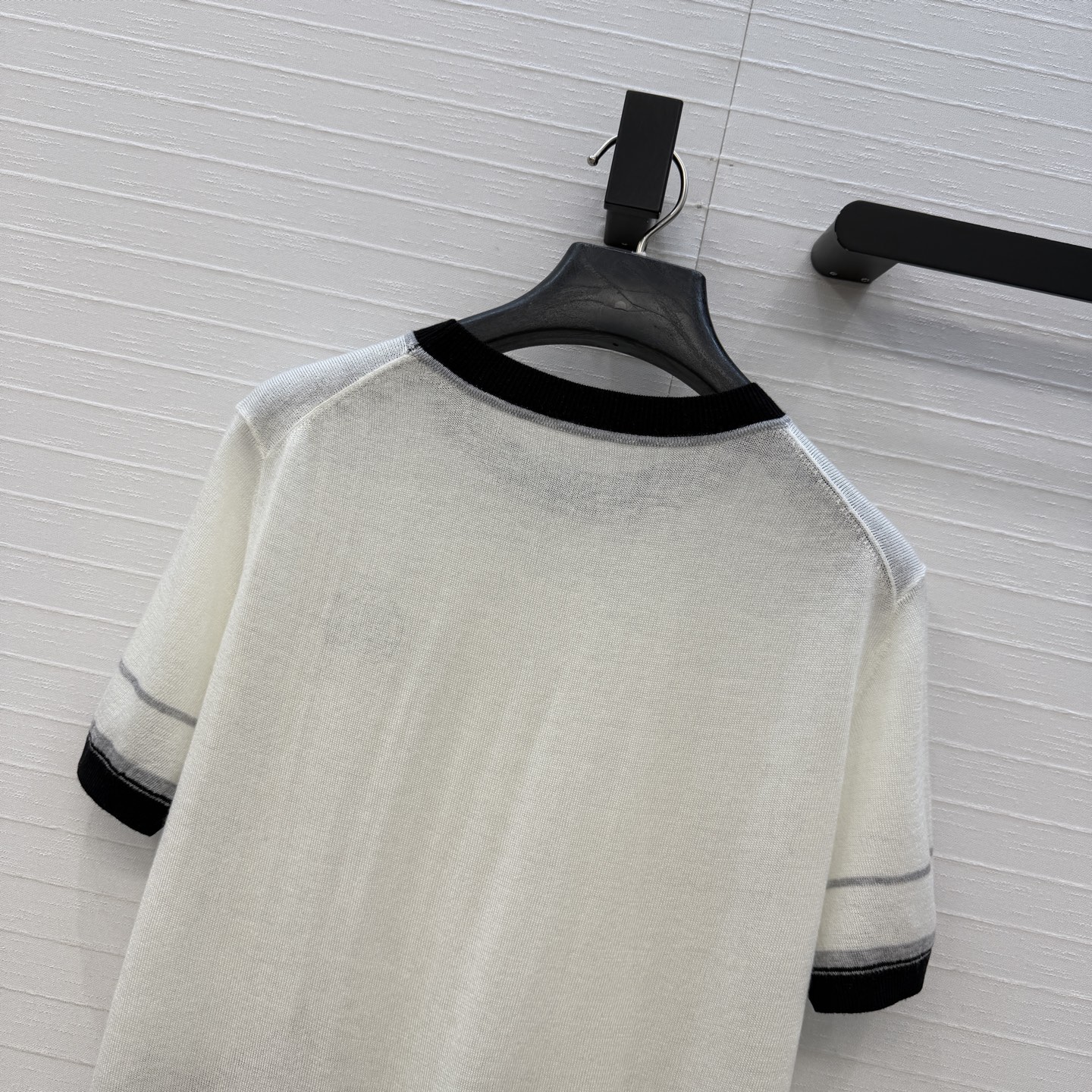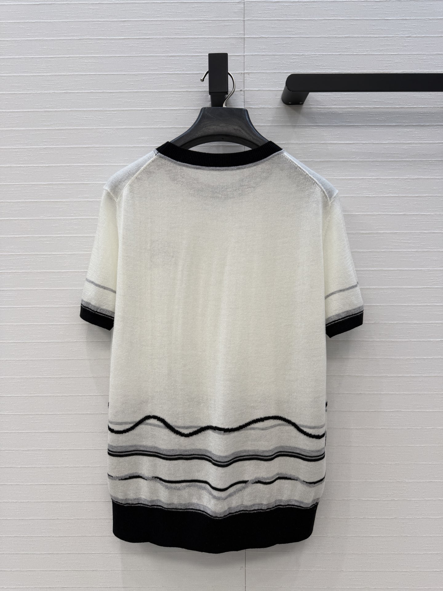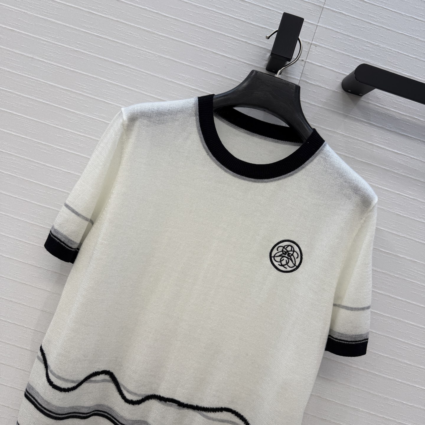 책장 챕터 패턴 자수 숏슬리브 니트