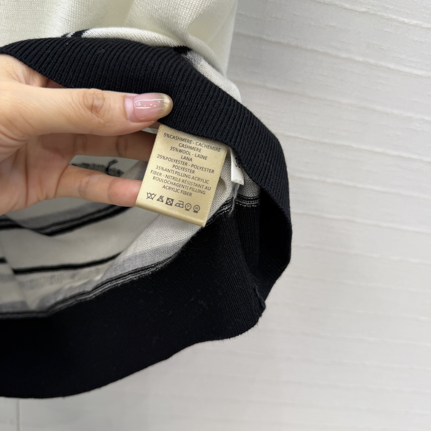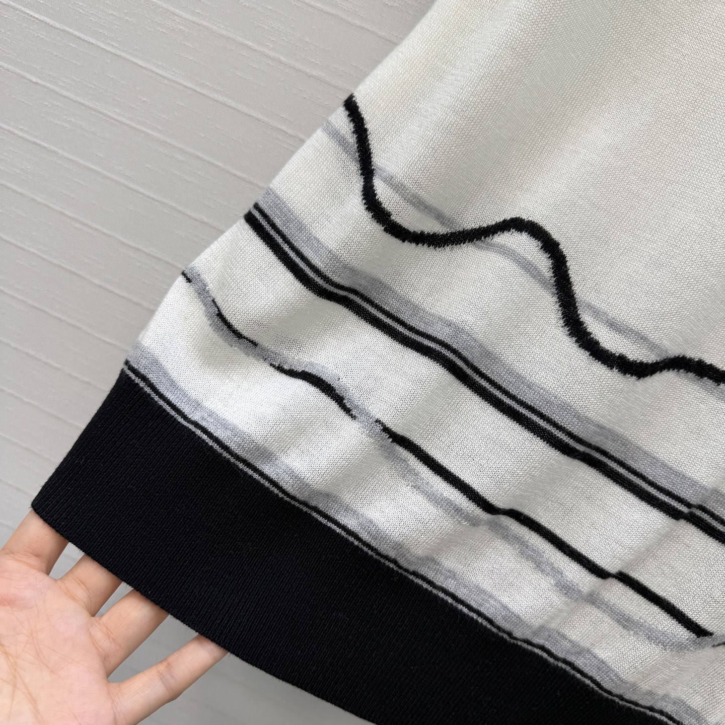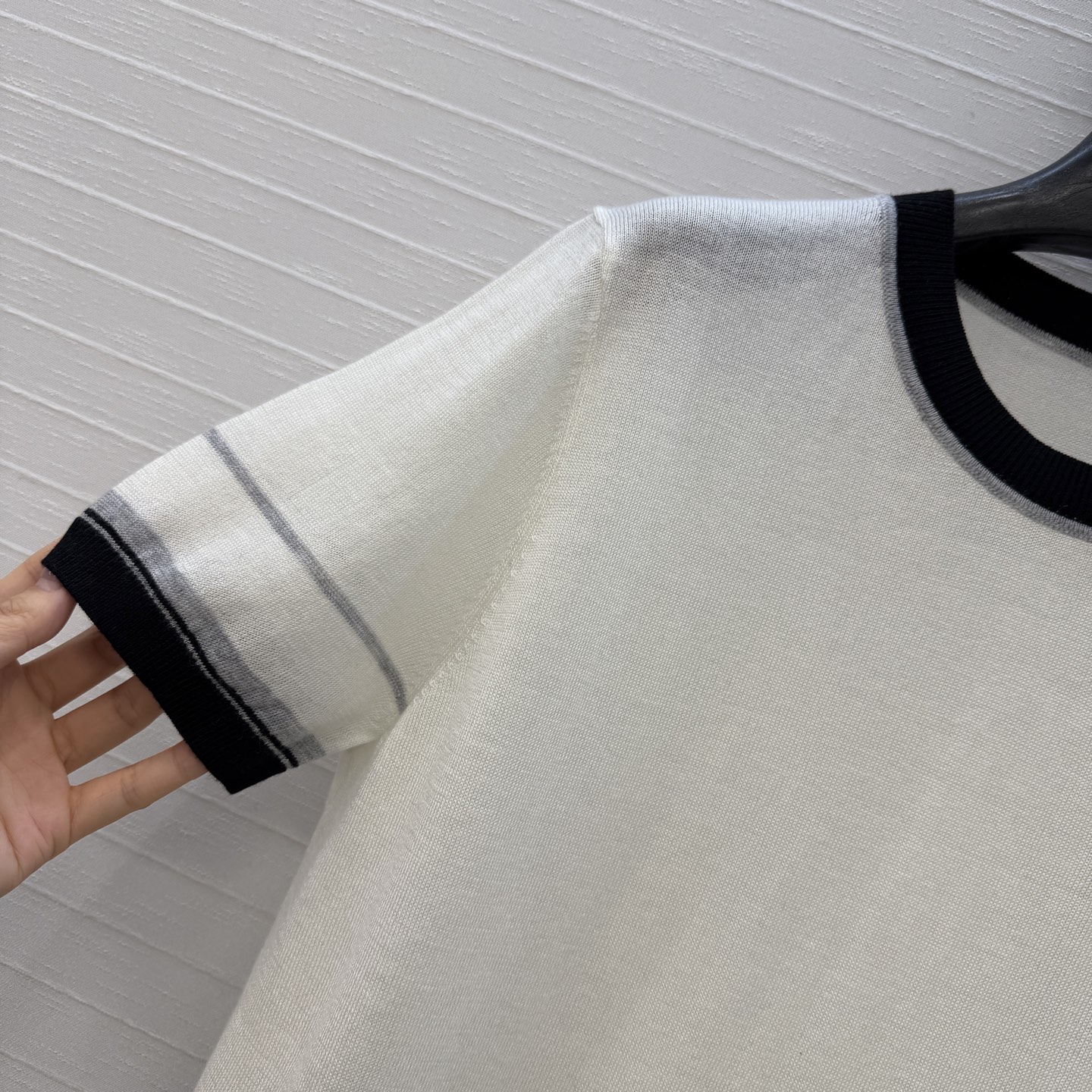 책장 챕터 패턴 자수 숏슬리브 니트
