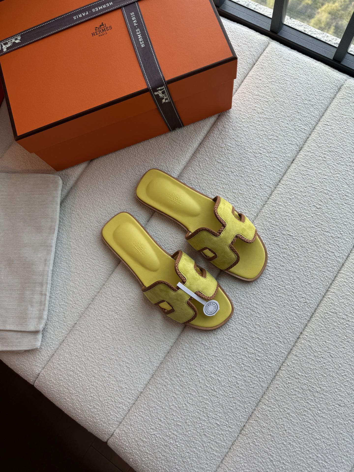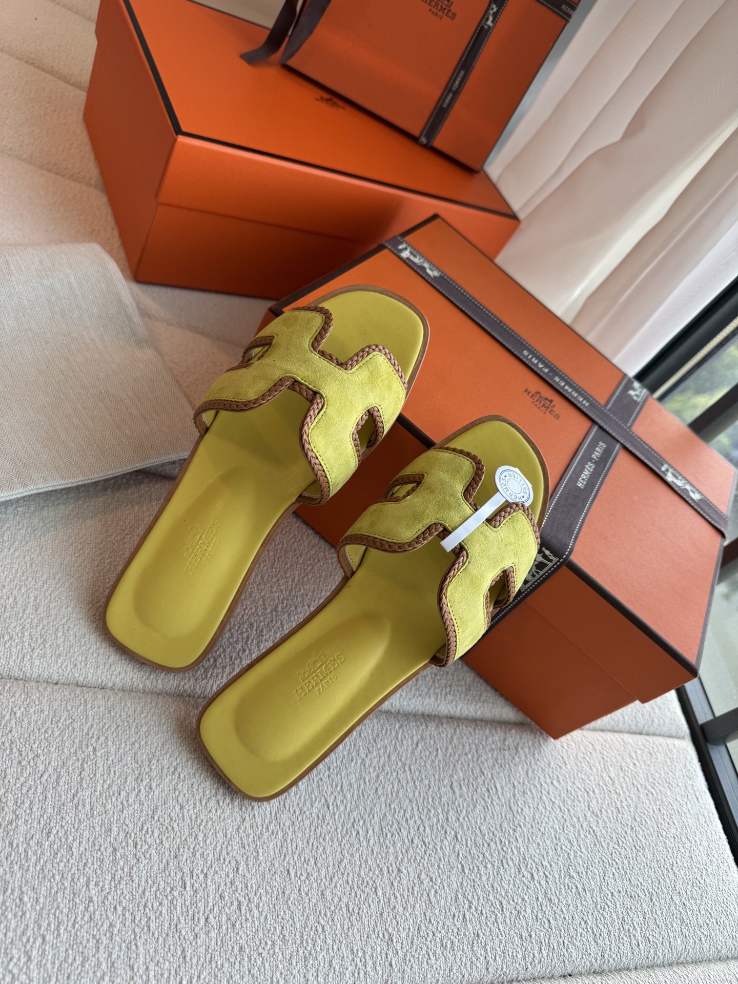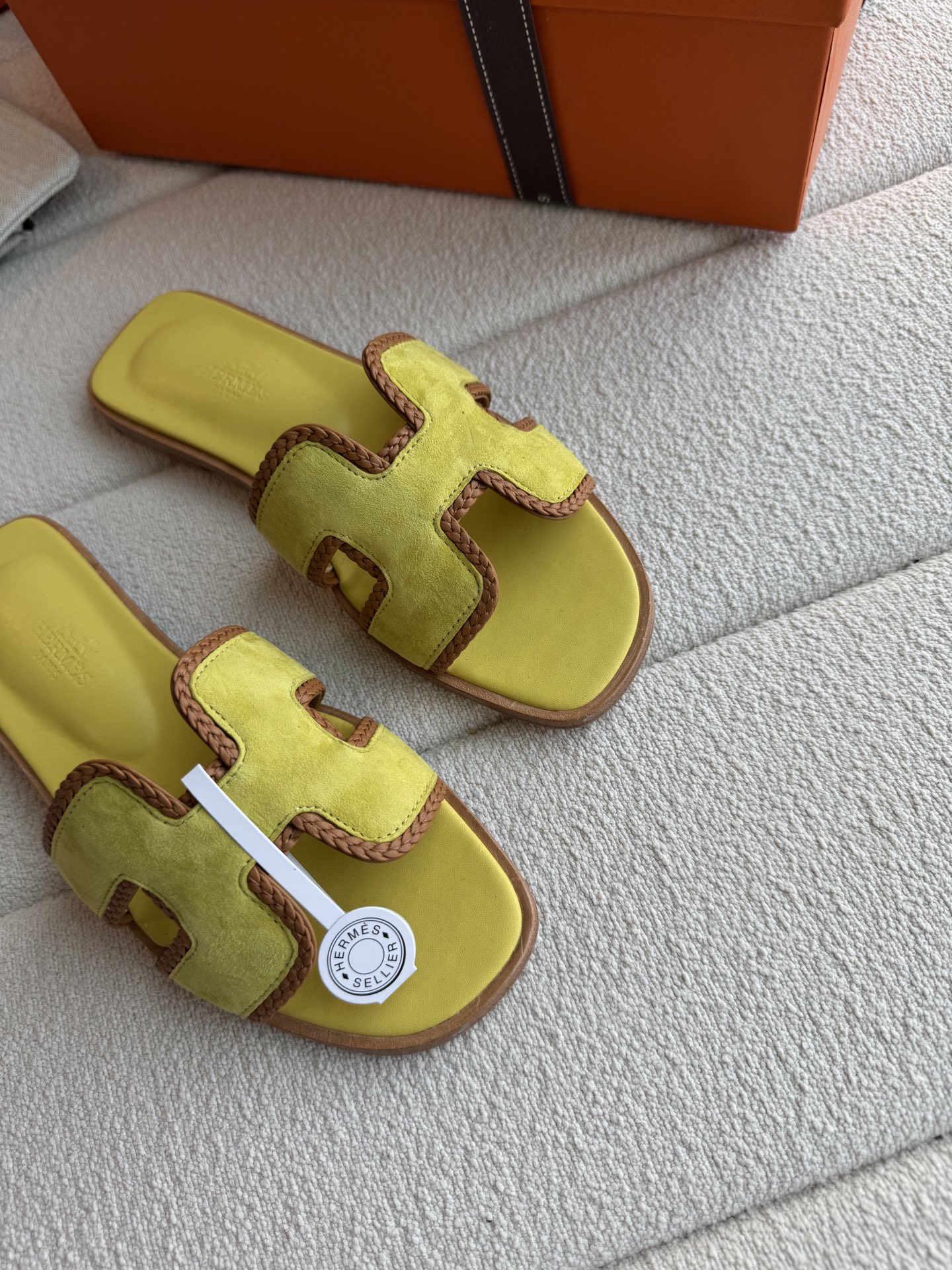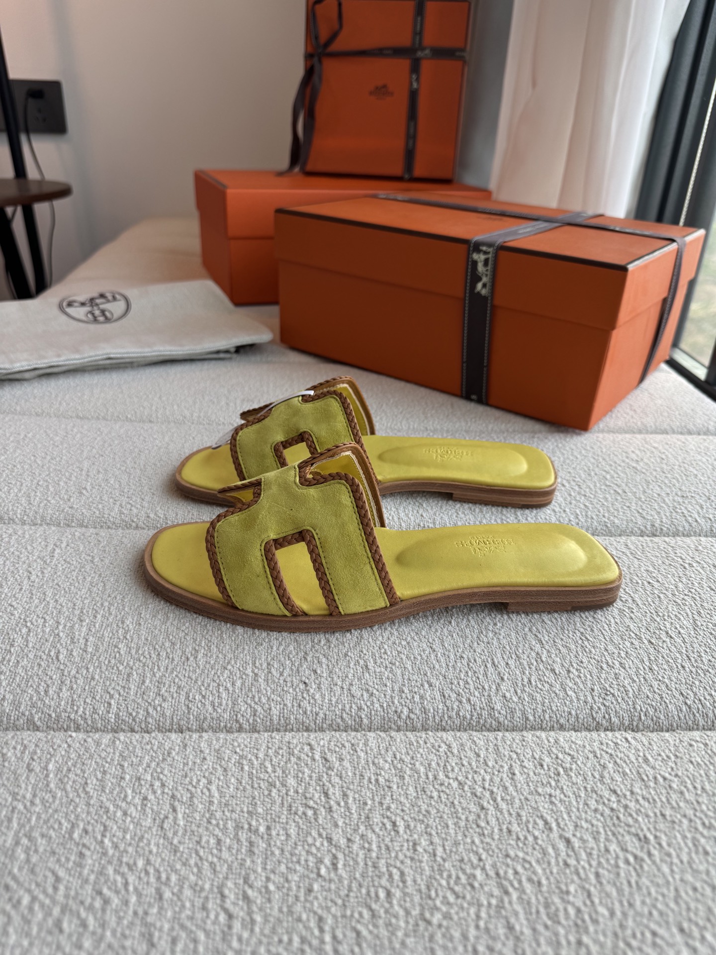 편직 H면 클래식 가죽 샌들