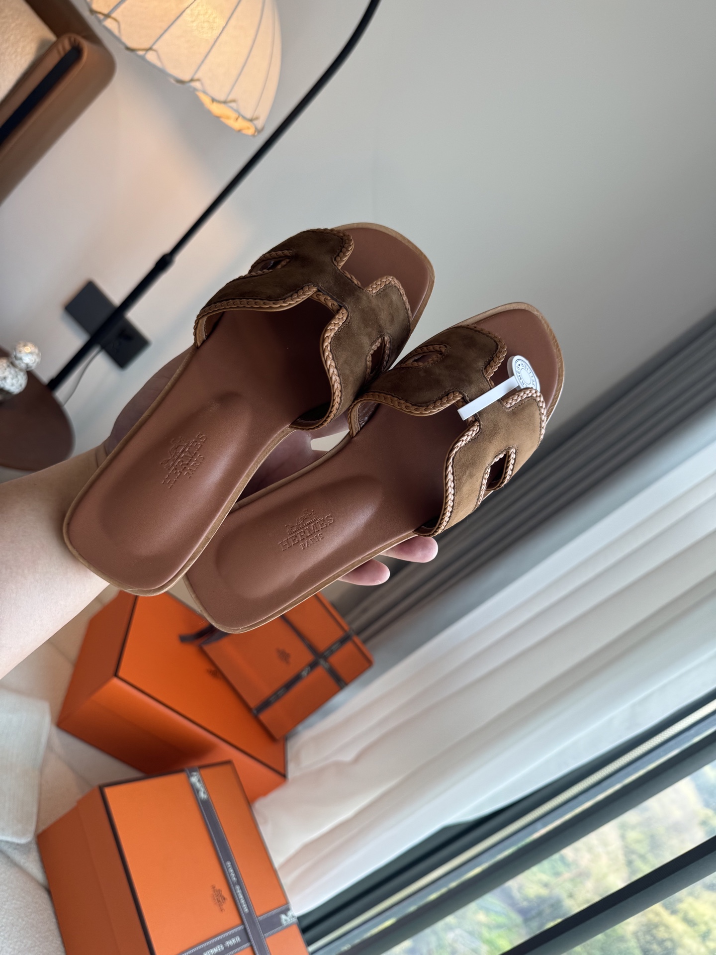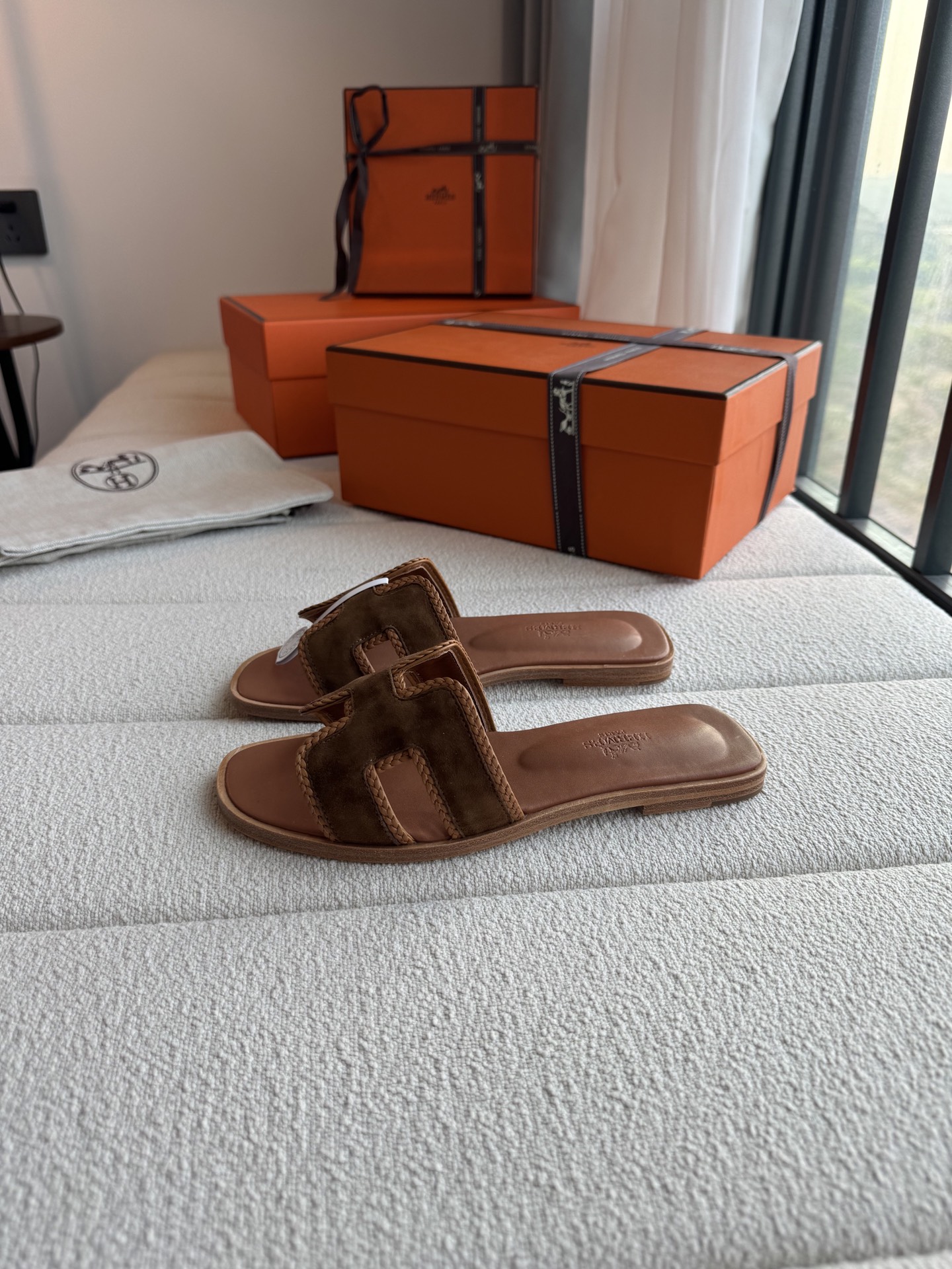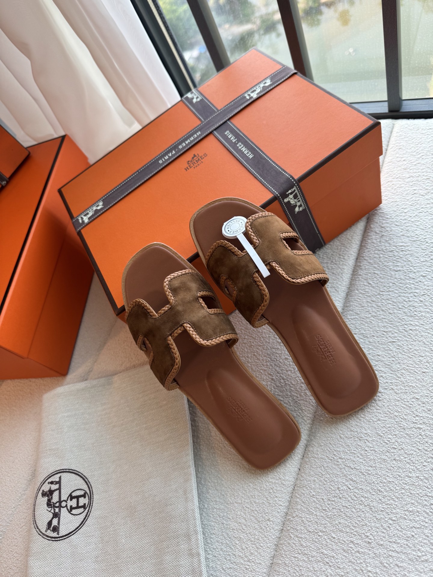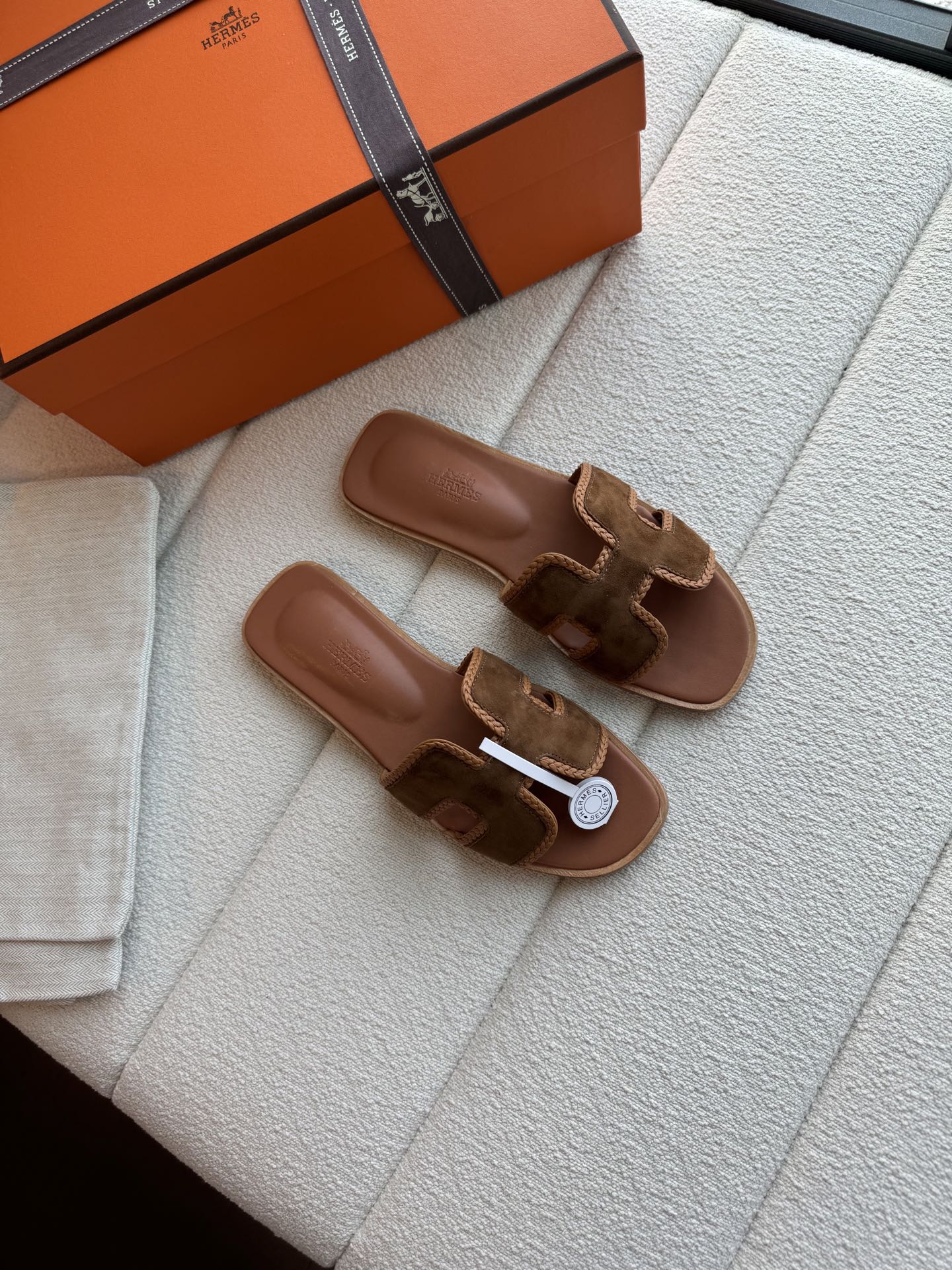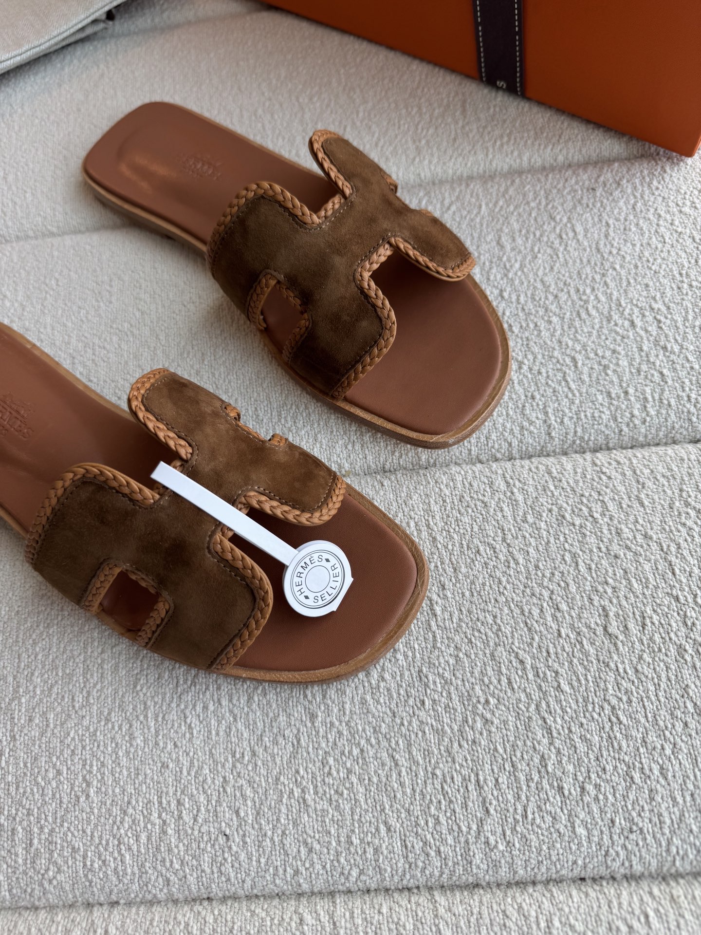 편직 H면 클래식 가죽 샌들